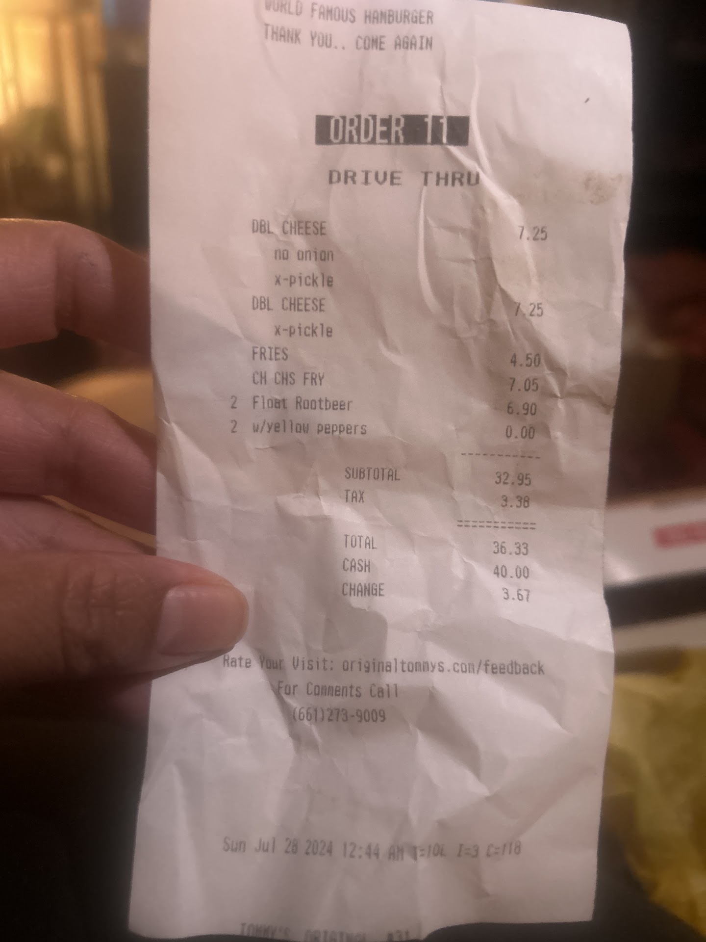 The guy asked if I still wanted the float and I said "of course!" I then hand her my card once more as she charges me for the float.š