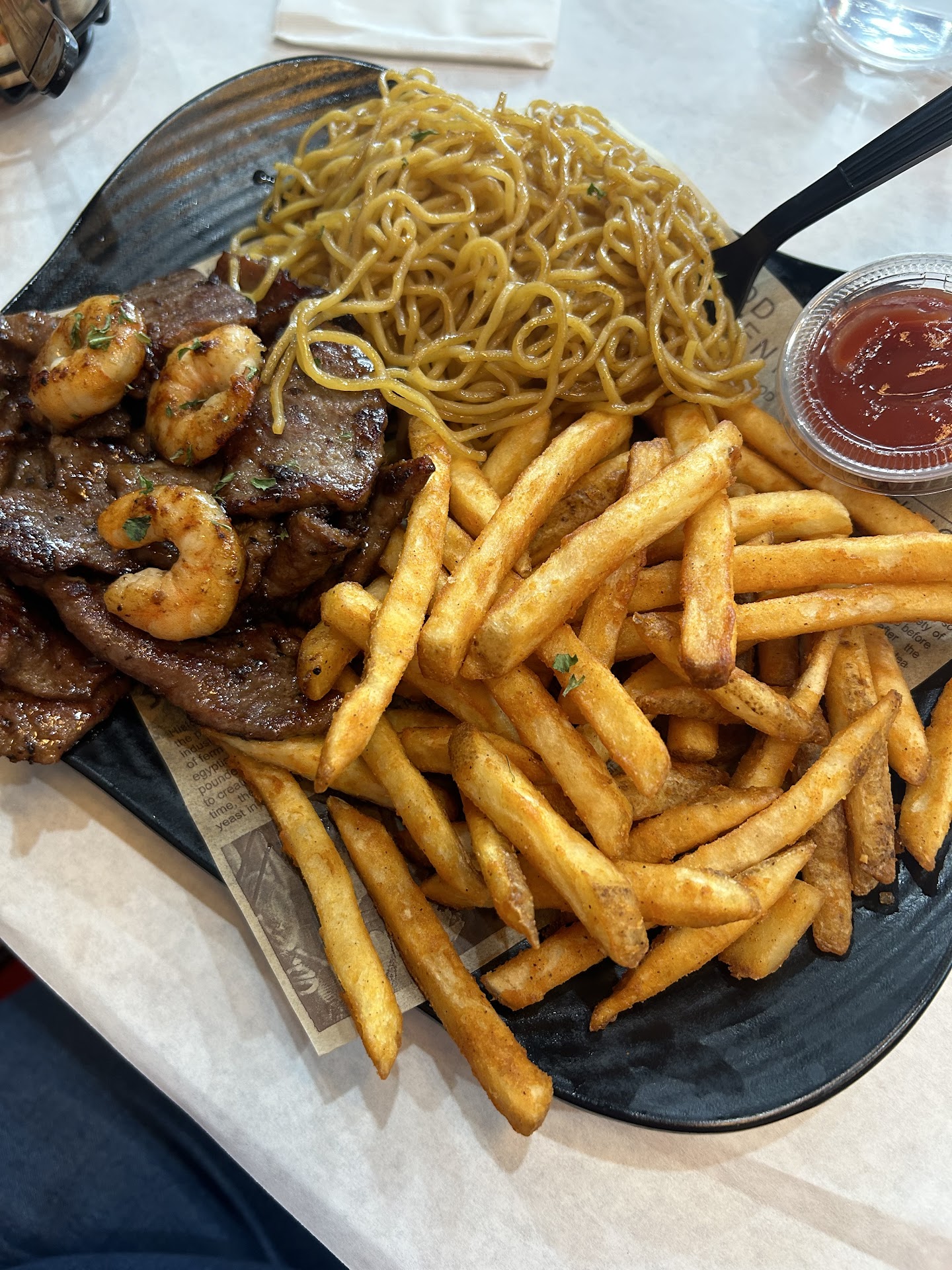Read moreFirst time going to this place that just opened across from IHOP at the front of the super target center. It's unfortunate that the businesses that operate out of the center seem to be so troubled because there's a lot of really nice ones that seem to have been successful but this area just does not get a lot of good business even though it's a necessary service on the east side. There used to be a really nice custom pizza shop that didn't make a go of it where the IHOP is now. This place has reasonable prices for a crab place and other stuff. I haven't tried any of the buckets but I tried the combination platter with chicken beef and shrimp. Not a lot of shrimp and not as much meat as I was hoping for but the noodles were fantastic and the salad was a good supplement. Very fair good portion for the price. I still need to try the buckets. I just wasn't sure if I would have enough variety with that versus the plate. One thing I found a bit odd was they put like a paper from a newspaper on top of the platter and they didn't really need it because the plate was very nice and did very well on its own. Decent smoothies and Boba. I just need to try more things before I can form a full opinion of the food. The people were very attentive and helpful except for the fact I wasn't able to get a water refill despite it being quiet on a Monday. Good place great start hoping to come back soon.