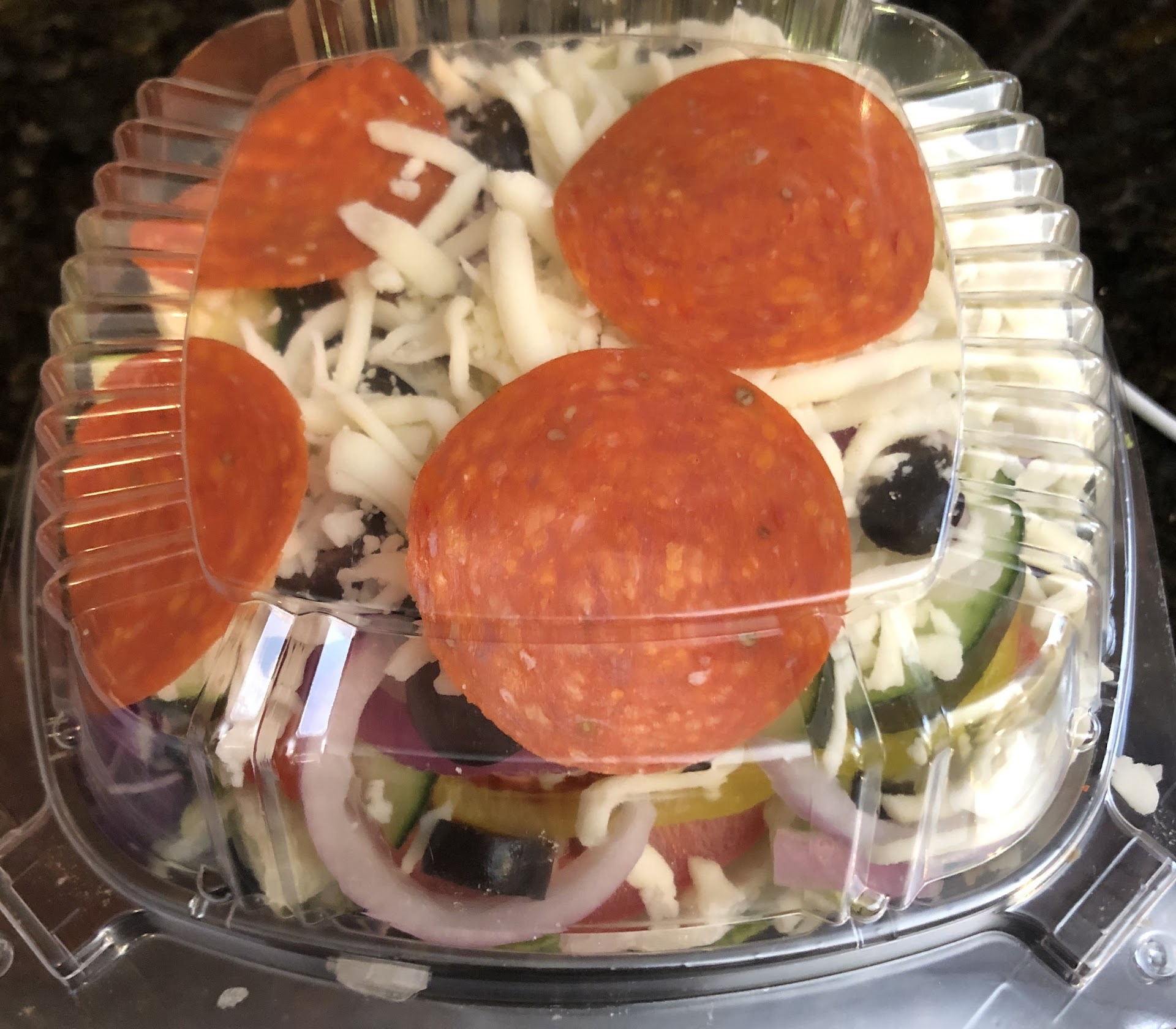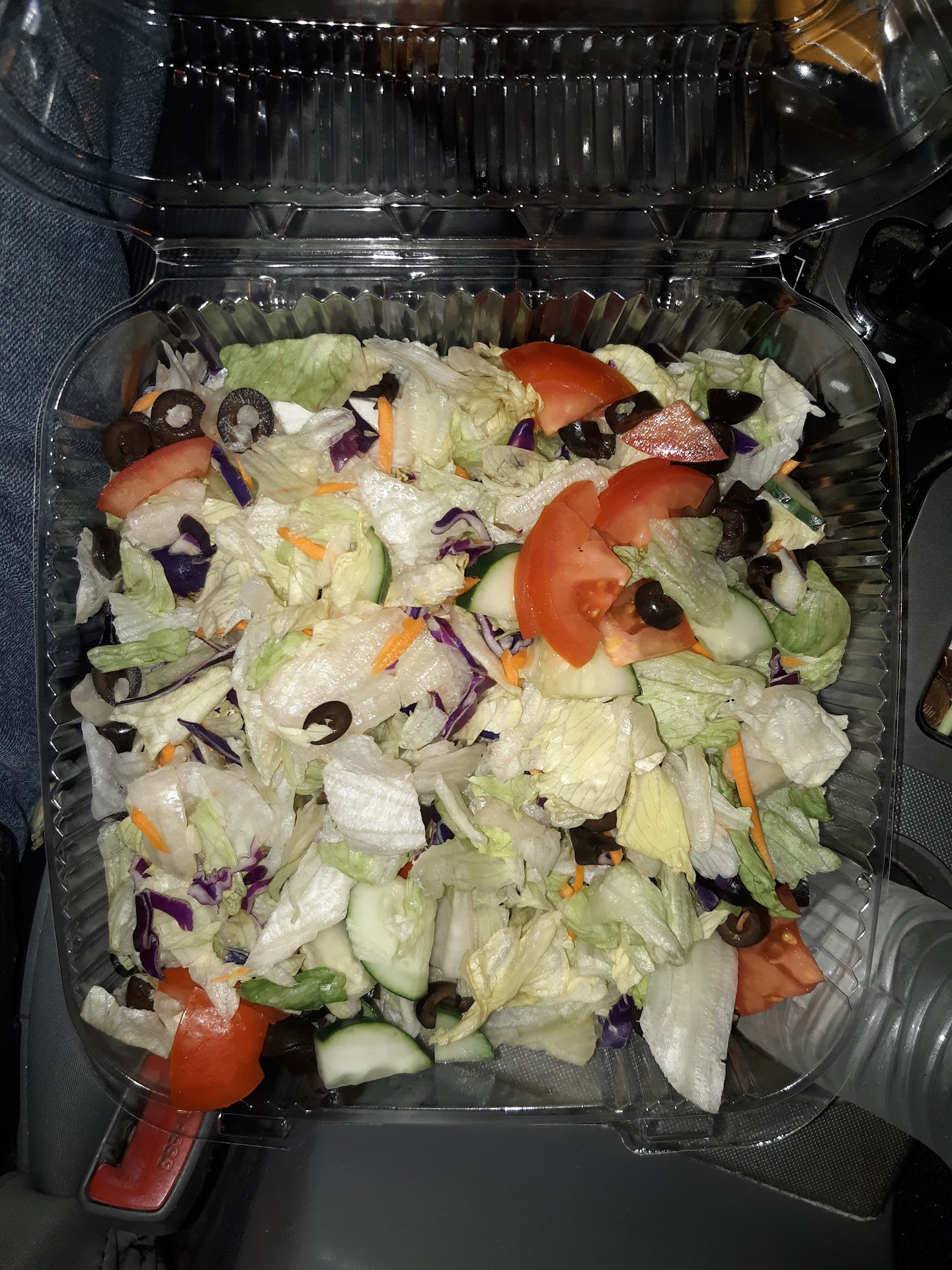 Read moreThis evening we were in search of some tasty Pizza, which is hard to find in this Valley. We have tried, Amore's , Pizza Hut, Gezziny's, Big Als, and Dominos, and after reading the reviews of this place, we finally managed to make it here and see for ourselves what they had to offer. Upon entering this small hole in the wall place, we noticed that there were only two small tables and 4 chairs available and by small tables our Pizza would surely not fit on the tables and if so, no room for anything else. We decided upon a X-Large Pizza with Peperoni on one half and the rest of the Pizza to include Tomatoes, Olives, Mushrooms, Canadian Bacon and Sausage. We also ordered a large Antipasto Salad. The first surprise was that they had no cheese powder to offer customers, they did have crushed red peppers, but not cheese powder. The even bigger surprise was after leaving with our food, we found out that the Antipasto had NO CHEESE, NO MEAT in it(see photo below), and not even any Italian dressing on it ,or even offered to us. I thought this cannot be right, and as luck would have it , one of their delivery guys was about to leave and I showed him the Antipasto and he confirmed that they usually have the meat and cheese in it. I was told that they had a new person and possibly that is why it was made as it was. The saving grace here was the Pizza, it was as many customers have commented, great, delicious, hot melting cheese, the sausage actually had fantastic flavor, and overall this is the reason for 4 stars, which would have been a 5 star had they prepared our salad which is critical to great tasting meal when prepared properly, and this I blame on the man in charge, for if he had supervised properly, this Antipasto would have been prepared correctly and not had me pay more for nothing more then a regular salad. And if anyone is wondering, yeah we will most assuredly return when the urge for Pizza strikes, but this time checking what we are getting before walking...