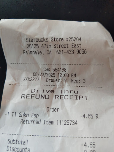 I will never return to this location. I had the worst drive thru starbucks employee named Vanessa. She has short hair and was wearing a hat with pins on it. I go to other Starbucks locations very often and this is my first time encountering such an spacey and full of errors in my order. I am pretty forgiving person but Vanessa gave me attitude and never owned up to her mistakes. She told me that it was my fault. Then she redid my drink and again she got the size wrong. And spoke to me with disrespect. I asked for my money back after her second chance and overall rudeness. I dont know who the manager is at this location but you got to put people that have effective customer service skills at the drive thrue window. Nobody wants to go to Starbucks and have someone like Vanessa getting their order wrong multiple times and then speaking in a rude demeanor. I called over the phone to speak to the manager. I spoke to someone named Amy who said she was the manager. She sounded very robotic and she kept saying I am sorry you experienced that. Then she said she was going to speak to Vanessa and get her side of the story. I asked her to please view the camera and audio so she can see for herself how Vanessa was treating me while with my family watching this. Amy said she didn't have access to that info. She proceeded to tell me that have not received any other complaints about Vanessa that day. Amy said maybe she just had an off moment. I told her that this shouldn't be happening to not even one customer. And many times customers don't speak up when they are being mistreated. I hope the actual owner of this Starbucks finds out that some of his team members are mismanaging his business. Oh and the horchata shaken expresso tasted awful here. It tastes delicious at other...