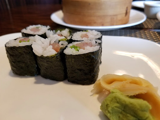 Food: 3/5 Shrimp Dumplings were O.K. , but they tasted a bit fishy, like the shrimp used had gone slightly off, or they are using fish paste to try and stretch out the shrimp. The cabbage underneath the dumplings in the steamer was old, black and dried out along the edges. The dipping sauce was pretty good, but not the best I have had. Chicken Egg Roll was very good, crispy and not greasy at all. Lots of meat inside, actually maybe too much meat, a bit more cabbage in the filling would have lent some more moisture. The duck sauce is the typical chinese food pre-made sauce, not home made. Yellowtail Scallion Roll was pretty mediocre. The fish itself was of average quality, and was rolled pretty well. The real letdown here is that the rice they are using is not the right kind and is under-seasoned. They are using a longer grain rice, perhaps it is even the same rice that they are serving as sides to their hot food. This type of rice does not make for good sushi, it is dry and starchy. Not the best. Chicken & Broccoli was pretty good. We liked the sauce and the broccoli was perfectly cooked. Again though, the rice on the side was plain bad. Whatever kind of rice they are using is either poor quality or they are not cooking it correctly. Starchy and gummy. Singapore Mei Fun was very good. Generous portions of perfectly cooked shrimp, and we liked the seasoning on the beef. Good amount of vegetables as well. Good spice level. No complaints here, A+ Mei Fun.