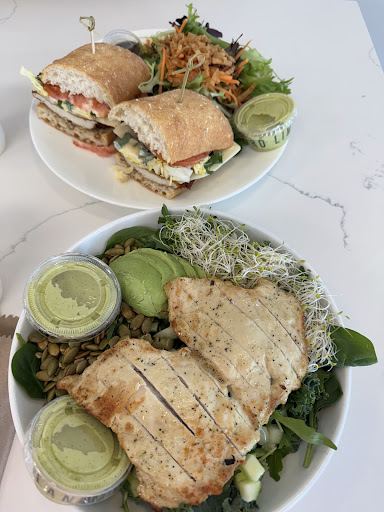 We had friends who wanted to meet us there because they wanted a "healthy" meal. We walked into the place with only one other table having customers. The table where we sat had not been cleaned properly and we literally had to flag down someone to wipe the table down. The music was blasting which really is not conducive to sitting and eating. We asked to have the volume lowered and they did accommodate. Now, my wife and I both had salads with the addition of sliced chicken breast. The salads were appropriately dressed, but the chicken was dry and tasteless. What really hurt was the cost: 2 salads with chicken breast added and two sparkling waters, $51.00! Also, aside from sparkling water, the "healthy" beverages are sugar-laden concoctions. I looked at the nutritional breakdown of their smoothies and was horrified....one had close to 80 grams of sugar (equivalent to 19 1/4 teaspoons of sugar). This is a healthy drink??? Sorry, but this is nothing but a SLIGHTLY better quality fast food restaurant. There are many other places I could go for better atmosphere, better service, and comparable prices. This place is a...
