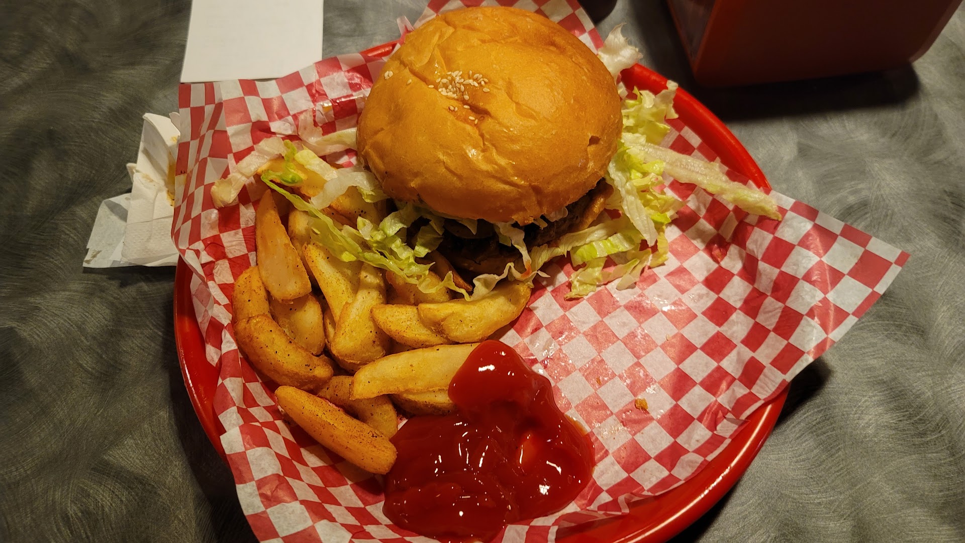 I haven't been back here since I was a teen and was so excited to go again. Sadly though, this visit was a disappointment. I gave 2 stars because the seasoning on the Buffalo burger was good, but the burger wasn't cooked to my specifications and it felt a bit thinner and messier than I remember. It felt like a Frankenstein burger, with only 1/4 being cooked as I asked, and the other quarters were falling off, trying to hold on for dear life because they were all cooked differently. It was.. odd.