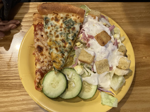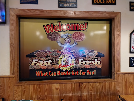On the way home, a friend, who just I picked me up mentioned he was hungry! How convenient was our location at the present; across the street, old Hwy 41, and 17thAve Palmetto Fl. Went inside and that smell of pizza filled the air, and, and I saw a large buffet style arrangement with salad, with various fixins, including 4 or 5 different kinds of pizza all sliced for takin. Near the end of the table were 3 or 4 different kinds of dessert pizza. I chose to have the buffet selection, and my friend chose small meat pizza. Great choices, good food, staff kind and helpful, and the price for both these meals was around 24 bucks. For dessert,Try the chocolate pizza, or the cinnamon roll, apple slices, better yet, try them all, in moderation of course. Good stop; stop in see and have a great meal!! Update 4-22-2022 Today visited Hungry Howie's with my visiting Son. We had the salad bar plus pizza. Our waitress Stella was really friendly, and made sure we were taken care of with extra plates and smiling service. It's a Friday, so we decided to go before the Friday crowd came rushing in for beer an a great meal. Howie's has many various types of pizza's from all meat to all veggies. Oh they also have various desert pizza's. If you haven't tried Hungry Howie's; you should!