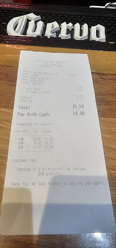 I am sharing my receipt on here and it doesn't show the 3 dollar tip I gave. I paid over 18 dollars for just 10 wings that are no longer the same.