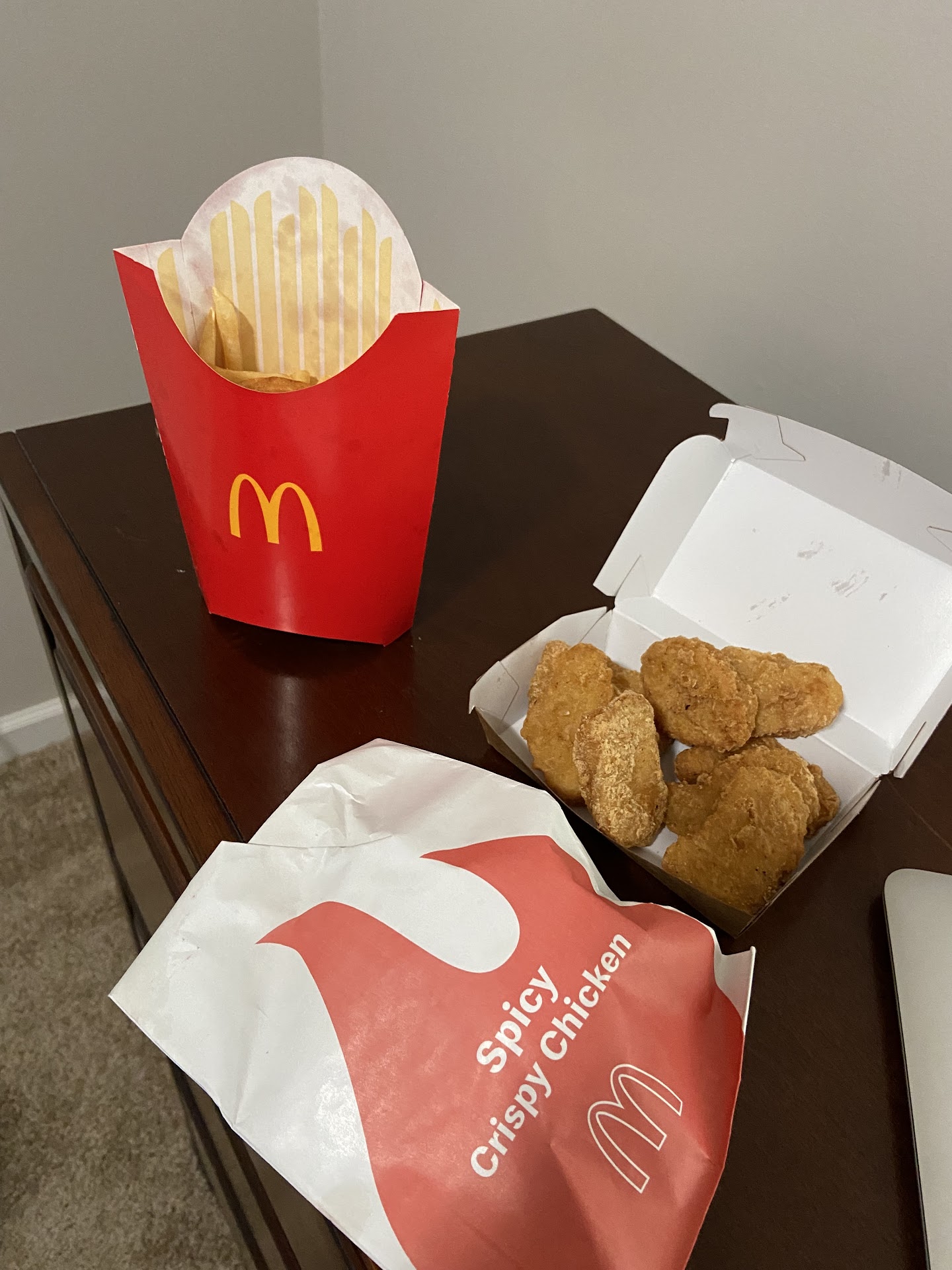 Recently, we've been able to get there around midday, and it's a little better, save for the fact that we HAVE to sit in the restaurant for an extra three minutes just to make sure our order is right. Staff is still pretty loud, but it seems to be centralized in only a select few of them, so it isn't as bad. What gets me is that we have to wait longer for an order that is very clearly labeled on a screen above their heads, and all they have to do is put in ten more seconds of effort to make sure that EVERYTHING THAT WAS ORDERED IS IN THERE, INSTEAD OF MAKING THE CUSTOMER WAIT ANOTHER FIVE TO TEN MINUTES JUST FOR A DRINK. Would YOU want to be served like that? Yesterday, I went in with my family again, we had our order taken by a girl working drive-thru. And honestly, she did great! She took our order properly, she was pleasant, she even read off the salads since they aren't visible to customers. At this point, WHY that still is, I have no idea. But I appreciate her being so patient and pleasant and getting our order RIGHT for once. It was the girl that handing us the food that irked me, however. Because we had a (very nice) Uber driver waiting on us, my family and i quickly skimmed over our food, deemed it okay, and hurried out. The problem arose when we got home and started distributing the food and selecting what would be saved for a later meal, and I noticed that although we had a large fry listed on the receipt, it was missing from the bag. While most other people will write a short review on this restaurant, I will not because I am truly at my wit's end with this place. This is the last time I go to this McDonald's. I'm tired of paying for food that I will not receive. What's disappointing is that this is the only McDonald's within walking distance, so if I crave a frappe or something, I'll have to head into Newnan.