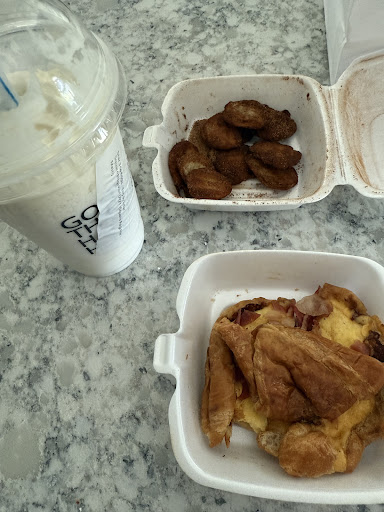 Next the food wasn’t good. The frappe was more of a milkshake and had a funky aftertaste. The donut chip was stale and not worth any money. The sandwich was poor, look just like a Dunkin’ sandwich, and sting with their bacon, as it only had 2 small bacon.