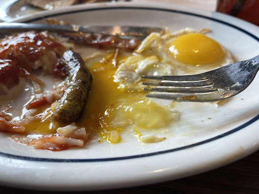 Read moreWe were there a week ago and although our service was slow, we enjoyed our meal once it arrived. We had to ask for refills on our coffee & actually had to go up to waiter work station and ask for more coffee. We thought we’d give it another try today, one week later. That was not a good decision on our part. We ordered coffee, some of our table regular and some decaf. I had ordered decaf & was brought regular so waitress took cup back & said she’d bring me decaf. We waited quite awhile and still no coffee for me. Had to go to waitress work counter and ask them to bring me a cup of decaf & more coffee for the table. With a little longer wait I finally got my first cup of coffee. Our waitress took our order and we waited, waited, waited. We were there an hour, tables that had been seated after us had there food but not us, nor did our waitress come back to our table. We went up to who we thought might be a manager ….he wasn’t….we told him our story and asked if he would get us a manager to speak to. He said he would. No manager ever appeared but our food did shortly after that encounter. One person at table said she needed silverware & napkins. Waitress said she would get. We were all served our meals. A couple ladies in our group said there eggs were just warm but was not going to send them back. After all we had waited over an hour. The lady who had asked for silverware never received, she got up, went to waitress work counter got her own silverware and napkins for the table. We also took our coffee pots to the waitress work station to get them refilled as she never brought refills to us after we asked. When this happened we asked if we could speak to the manager once again. That waitress said what now as she walked away. No manager ever came to our table. We asked for our tickets, she brought them and we waited for change. When change was brought, those who paid cash did not get change back only the bills. If you’re going to keep the cash because you don’t want to make change, then make your menu prices accordingly…only in even $$$. Our group of 12 will not be back...