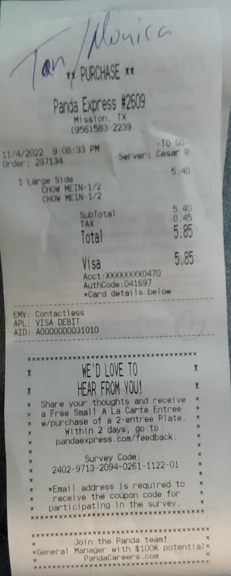 Read moreI have been visiting this location over the last 2 years and everytime I dine in I have noticed a very dedicated, hardworking and extremely professional employee that is always busy and constantly attending customers. I finally decided to ask her what her position was and she replied that she was just an employee. I am sorry to say that Ebony Rodriguez deserves to be more than just an employee. Her level of Customer Service, Attention To Detail and her Professionalism are Above and Beyond any I have experienced at any Panda Express. Keep up the excellent work Miss Rodriguez and hopefully someone in your organization will finally open their eyes and acknowledge all of the hard working employees serving customers day and day out. Awesome experience and I will definitely come back to this...