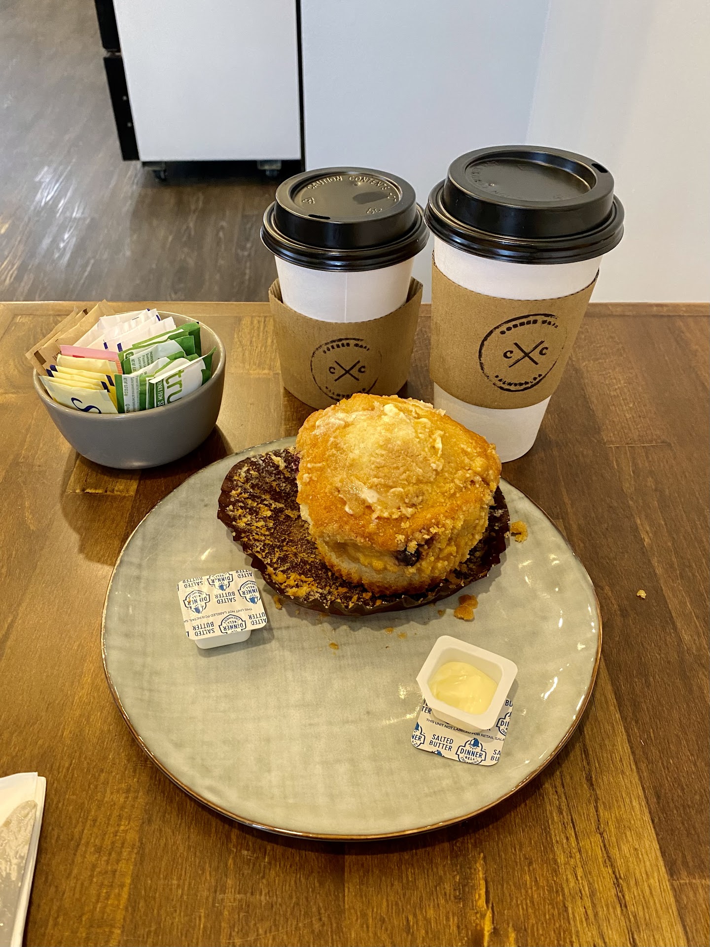 Regarding food: There seems to be some confusion in central PA over what a cappuccino is - some diners and cafes will hand you a cup of hot milk with cappuccino flavored powder mixed in and charge you $5-6 for what isnāt anything close to what it should be. Thankfully, the Corner Cafe owns and operates a proper espresso machine and faithfully makes a good tasting cup of cappuccino! We also tried their blueberry crumb muffin and its fluffy sweetness with whole blueberries paired nicely with the bolder flavors from the espresso in our drinks.