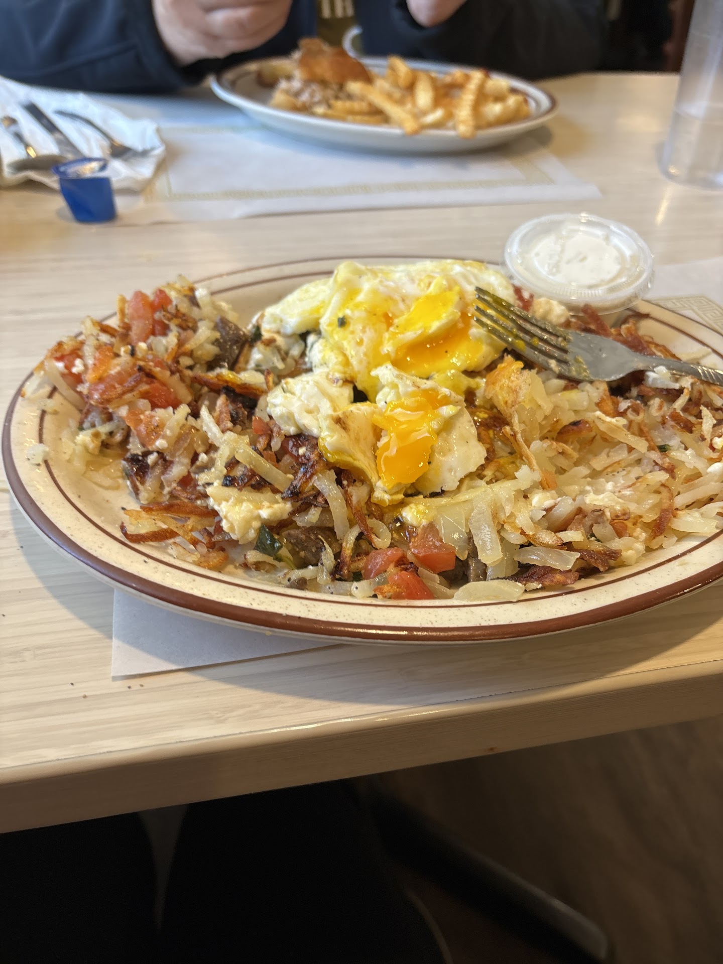 The food quality was just as perfect as two years ago and as consistent as the years we’ve been frequenting Main Street. The baked cod filets are fresh, ample, well seasoned and cooked. The potato pancakes are well made and made in house. Salads and sandwiches are a good size with delicious sides. Don’t forget the wide array of pies for dessert.