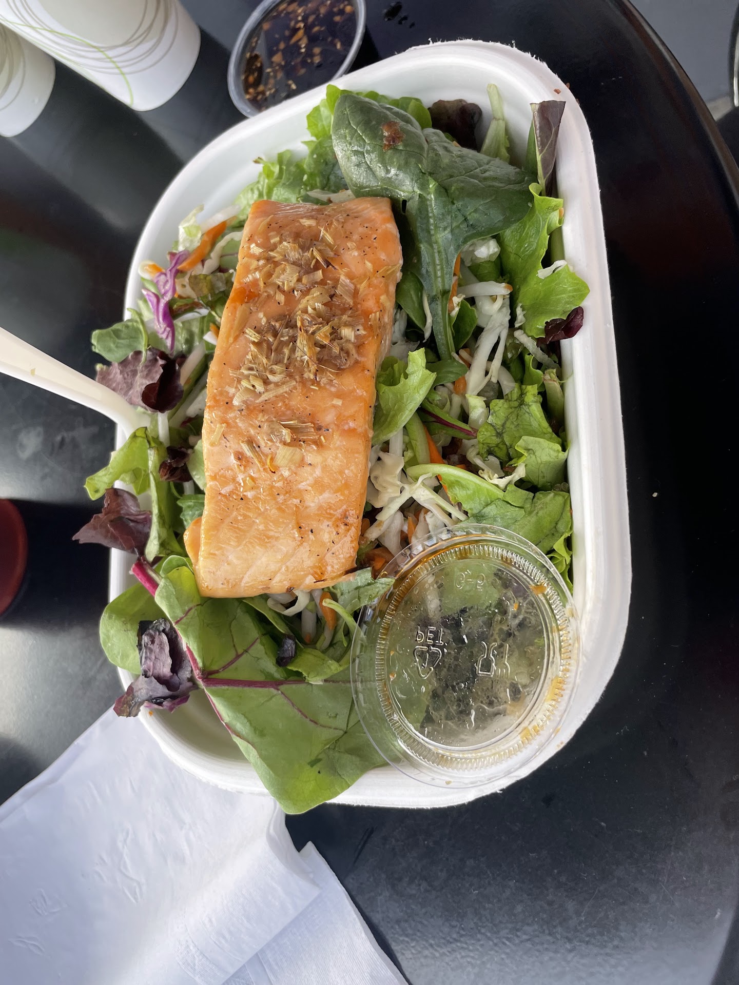 First you choose a base (choice of jasmine rice, brown rice, asian salad, rice noodles) and then a meat (pork, chicken, beef, shrimp, tofu). I went with the asian salad for the extra veggies and the beef. You automatically get wok sauteed veggies (or you can opt for steamed) and other veggie toppings such as picked carrots, bean sprouts, etc. My box was literally an explosion of yummy veggies. And of course you get to choose your sauce. I went with the tamarind, but I'm sure the other sauces are delicious too.