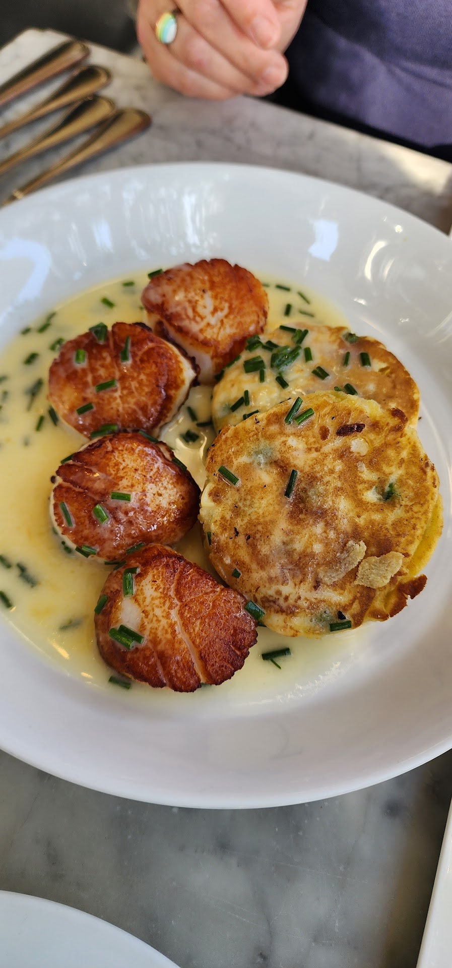 My wife and I enjoyed a nice evening out on 01/19/19 at this delightfully cozy enclave slightly off the main stretch of restaurants of California St. in Palo Alto. Our waitress was excellent in her service as well as our wait staff. We were wonderfully fortunate to get the patio seating area all to ourselves on account of a slow spurt on Sat night most likely attributable to MLK weekend; the seating area was cozy and well heated with overhead heating lamps, but not so warm as to make either of us too hot. I chuckled at our wait staff's attentiveness toward my wife's "slow picking" off her plate -- they came to and fro several times catching a glimpse of us from inside just behind the curtains and coming out here and again only to find my wife reach again for a small dribble on our plates - in which case they quickly doubled-back and reversed course inside. Only at the perfect moment did they tactfully come out and remove our dinner plates. :-) Our waitress also offered several tastes of wine before we selected our Pinot Noir selections (nice touch). We ordered the oysters and the salmon/potato waffle appetizers. We also had the maison olive oil with our bread and it was simply delicious. Oysters were pretty well balanced and the smoked salmon and potato appetizer was great with the garnish and cream/celery. For dinner we ordered the scallops and the New York steak with fries. I really enjoyed the scallops and the potato gratin-like side that came with them -- would get this again if we went back. The steak was medium-rare, but it was a bit of a tough cut and the fries, while tasty, were nothing short of typical fare. Unfortunately we had no room for desert. This place is an excellent spot for a fancy dinner and if you are into French-American cuisine. We prefer more complex flavors and a wider variety of spices and textures in our food (more typical of Asian cuisine), but for what we ordered here,...