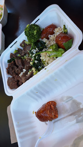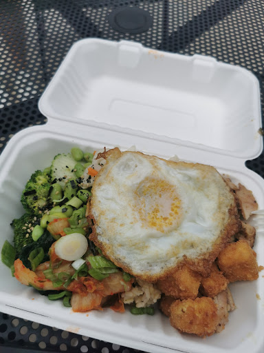 Decent Asian fusion food, but there are a few things that could use improvement. The meats are tender but a bit dry. The kimchi is ok, but it's vegan, so you'll miss the savory element of non-vegan kimchi that normally includes anchovy or salted shrimp. I still think it's one of the best places to get lunch on Stanford campus, and I usually get the marinated beef. That being said, the beef doesn't look particularly appetizing; it's actually grey, rather dull in color, and almost looks like it's been steamed or boiled. It's very tender, but, as I mentioned previously, it's rather dry. I tried the fried rice this time around, and it was pretty disappointing; the rice was overcooked, mushy, and lacking in flavor. Next time, I'll stick to the steamed white rice. There are plenty of toppings to choose from, and they cost nothing extra, so load up on the scallion, fried onion, achara (pickled shredded daikon and carrot), corn, spinach, etc. I was pleasantly surprised the first time I ate here because I noticed that they have (presumably) fresh squeezed calamansi juice. If you've never had it before, calamansi is a Philippine(?) hybrid citrus fruit; the result of crossbreeding kumquat and mandarin orange. It has a very unique taste and is absolutely DELICIOUS. Kind of a fragrant, perfumy, incrediblely sweet, and tart flavor. If you're not excited about the food, at least stop in to get the calamansi. My only critique of the calamansi is that they apparently squeeze and pour the cups ahead of time, with ice. So, the ice tends to melt a little and dilute the flavor before the customer gets to taste it. Perhaps you can ask for it with no ice, or with less ice, and they'll pour a fresh one for you that hasn't been sitting at the pass. I'll have to try...