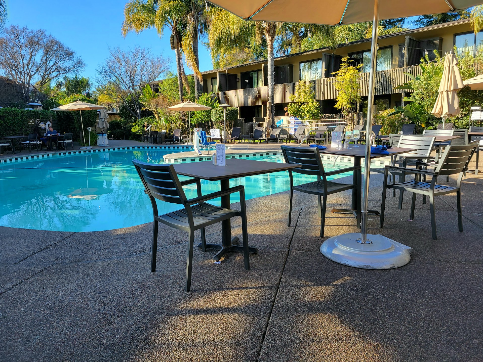 Cute place, good for outdoor, casual brunch if you don't mind kids jumping in the pool about 8 feet...