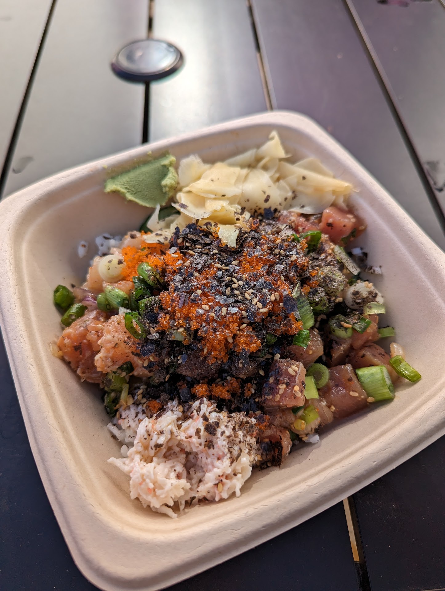 Read morelove this place for poke! It’s definitely pricier than the nearby Poke House in Town & Country and has smaller portions but I like the premade mixes they have. I usually get the premixed sesame gomae shrimp, the veggie mix, and the seared shouyu salmon. Since the mixes are already flavored you don’t need to even add sauce and it tastes delicious. I also recently discovered you can request all salad and no rice as the base so combined with the poke you can have a really savory salad! Anyways this place is great if you want a light and relatively healthy yet still tasty meal.