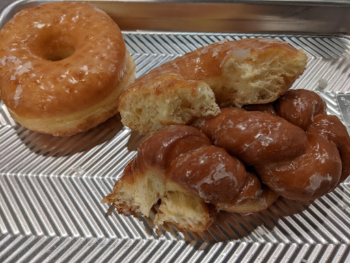 On the 'rare' occasion I crave sweet fried dough and I can't make it to Portland, OR for a Blue Star donut, or New Orleans for some beignets, I end up at Happy Donuts. Better than Safeway, and I would say on par with Krispy Kreme. (KK wins if you want to see the donuts being made in front of you) If you want a puffy airy soft pillow, always go with the plain glazed classic circle. I usually just get one of those, but their twists looked so pretty in the display case today I got one too. (The twists due to the braided shape are a tad denser than aforementioned circle pillows, but still pretty soft and just as good in their own way.) Then I realized I didn't have enough cash for their $5 minimum (this never happens at Blue Star bc one donut is about $5 😉), so I had to get a third donut. It's a hard knock life 😆. I was done eating before I thought to take a pic, I like that the donuts here are not greasy, as you can see the undersides are nice and clean. Some donut shops you get debris from dirty trays and some oiliness squishes through, but not at this Happy Donuts. We always go in the morning, and the oil is never rancid. This has happened at some other donut shops on the peninsula, where a decent donut was spoiled by bad grease, but not here. Staff is always pretty jolly too. This particular location is easy to miss, due to their location but it's got a good turnover. We drive past regularly, and often see young kids in Stanford shirts walking away with boxes of donuts (to power them thru their studies/late nite munchies). This location has...