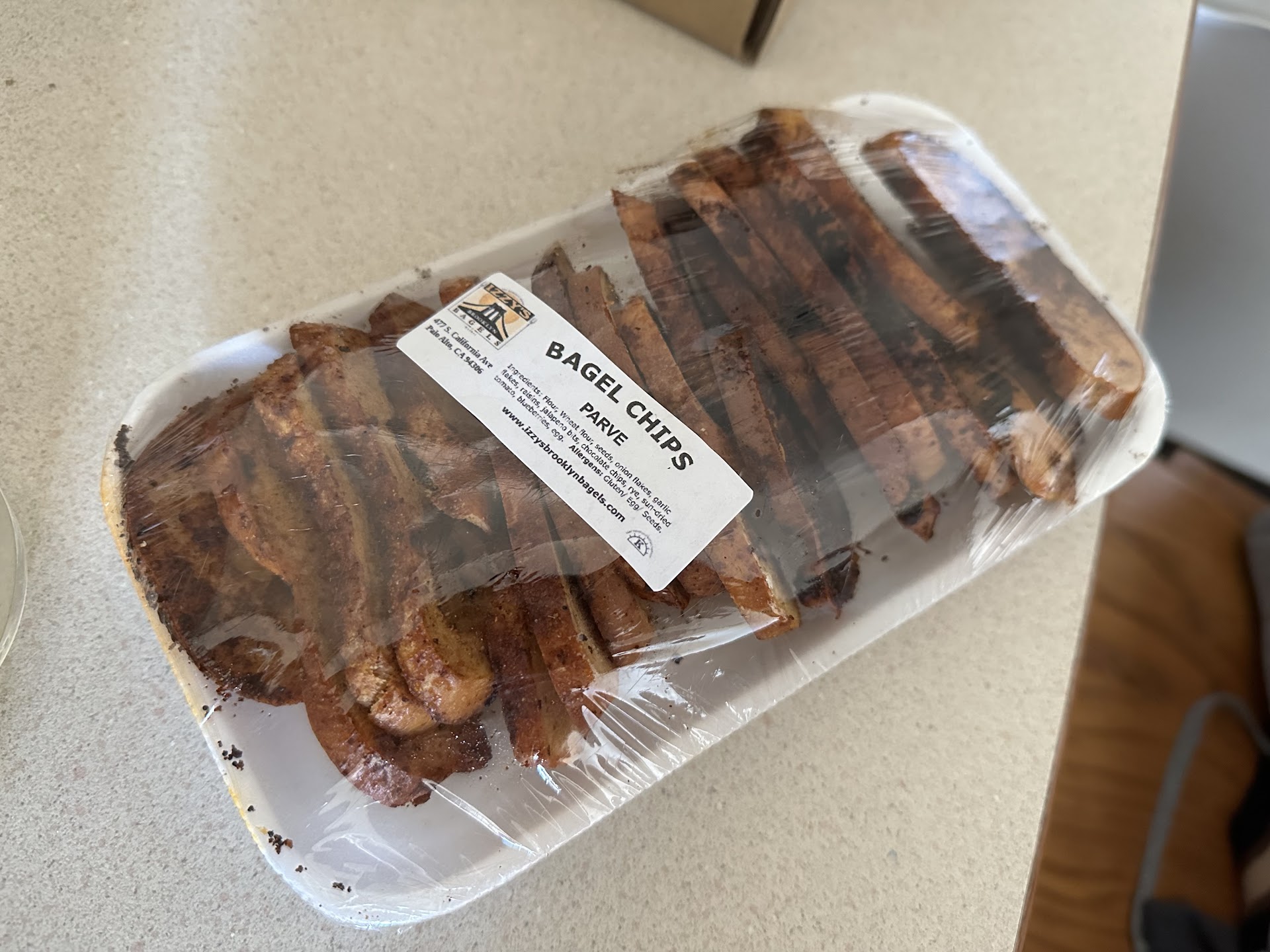 I also ordered a bag of day old bagels, which are described as "assortment varies." I was a bit surprised to receive all blueberry, as I'd been expecting and would have preferred a variety. I guess that's open for misinterpretation, and I would suggest clarifying the language for future patrons. The bagels tasted day old, as expected, but they will freeze nicely, and taste fresh enough once toasted.