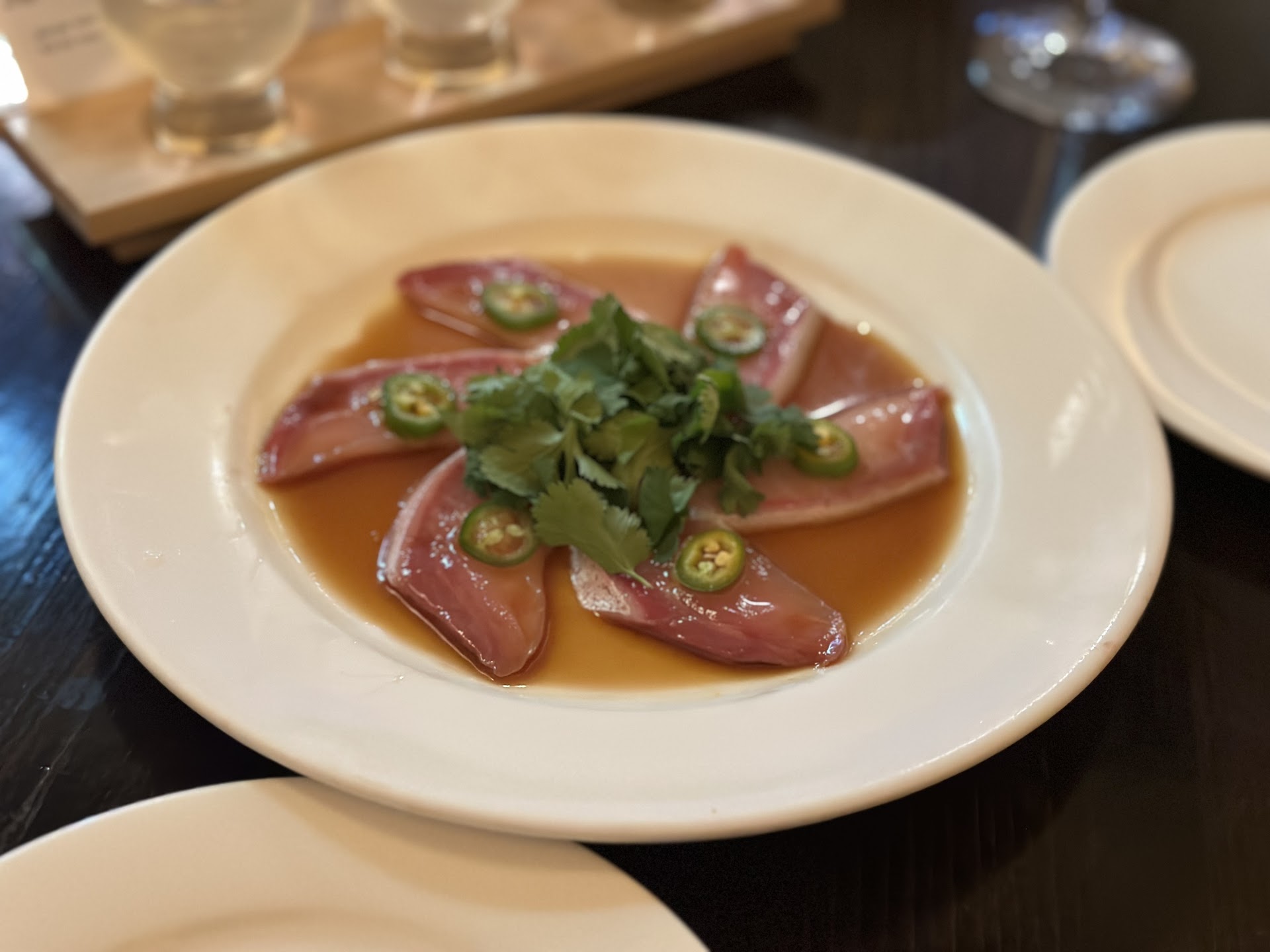 Speaking of waiters, we had an interesting experience. We had 4 separate waiters individually approach our table within 2-3 minutes of being seated. Each waiter asked us if we were ready to order drinks or food. This made it confusing to determine who our actual waiter was and made us feel like we needed to hurry up and rush (I’m not sure what the rush was since the restaurant was maybe 1/3 full). Ironically, the 4th person who came up to us asking for our drink/food order was not even able to take our order so they had to go back and grab one of the earlier waiters to take our order. The last strange service experience was having my phone knocked off the table by the waiter that took our order. Rather than pick up the menu off the table, the waiter swept/dragged the menu off our table and in that same motion swept my phone off the table. This same waiter made us anxious every time she brought us food or liquids for the rest of the night because everything was shaky/wobbly. In the end, the first waiter that greeted us eventually became our sole waiter and she was amazing! I wish she could’ve just been our waiter the whole time: it would’ve made everything less tense and rushed.