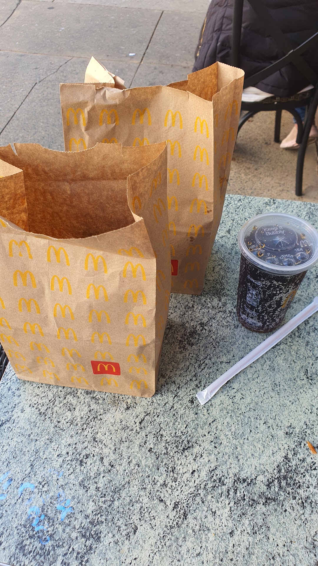 In my case, I had to ask twice for a bag to carry all my food, only to have them produce a tray. I explained that I needed it "to go", and so they put the tray away. I then had to ask again for a bag, after which they produced a bag barely enough to fit an order of fries in. It was only after I got back to my table that I realized they left out any sauce for our 3 orders of nuggets. Of course, this meant an argument with them since they were unwilling to part with more than one sauce packet. Absolutely...