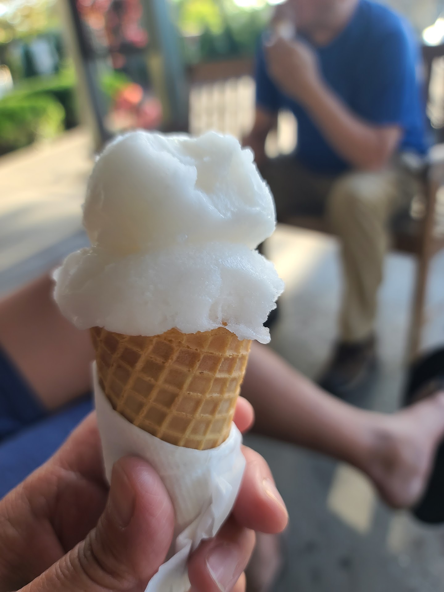 I can’t say the value was worth it. The cost of one scoop here would buy a couple gallons of ice cream at the store, and it wasn’t significantly more creamy or flavorful.