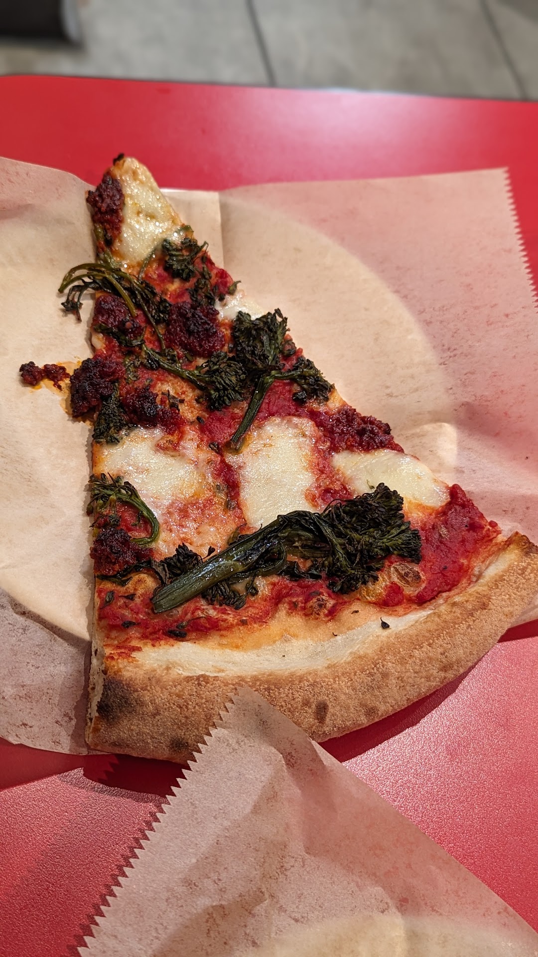 They have outdoor and indoor dining option. They also have most of their pizzas available by the slice, in the store but none of them would be vegan. Would probably try again if it was priced a...