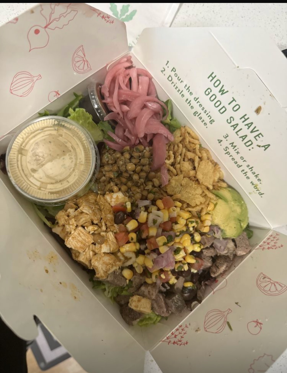 Their Sweet Heat dressing is a winner, striking the perfect balance between sweet and spicy. And the glaze they offer adds that extra touch of flavor that elevates the entire salad. The use of fresh ingredients, including their pico, shines through with every bite.