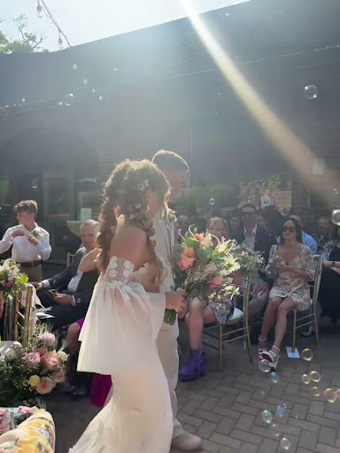 Cons: Kristen (event manager) isn’t there the day of the wedding so some things fell through the cracks like: (1) My biggest sadness was that, even though we had it written in our agreed upon schedule that only the bride & groom would go to the cellar just ahead of the wedding, and even though my sister tried to stop them from sending our parents/siblings/grandparents/friends down into the cellar, the whole bridal party got sent down there. This was a huge bummer for 4 reasons including (a) I was overwhelmed by people wanting to talk to me, (b) it basically ruined any reveal moment I would have had with guests that hadn’t seen me especially because I had very little of my own family there and they were practically now all in the cellar with me, (c) this ruined what would have been a touching moment with my father because I was overwhelmed by people wanting to talk to me and by the fact this was happening while my dad is looking at me crying and I couldn’t even give him my attention, and (d) this time in the cellar was the moment I had intended to use to fix the sleeves on my dress but it was now so chaotic that it actually made it to where I didn’t have time to fix the sleeves and it sort of messed up my outfit for the rest of the night. It could have been a moment for me to collect myself but it was the exact opposite. That said, I should have hired a planner, but I really really wish that the plan we had set out had been stuck to because it lead to the biggest sadnesses of my evening.