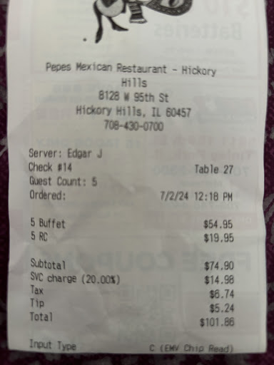 Pepe’s in Hickory Hills has a daily buffet from 10 a.m. to 3 p.m. for about $12.99 per person and around $3.99 for a fountain drink. It really is one of the best deals around. The buffet is on the smaller side, but the selections are solid. They have taco bowls so you can build your own taco salad, plus corn and flour tortillas and hard shells. There are simple options like ground beef and some family friendly items, and their Mexican dishes, especially the guisadas, have great flavor. The steak and chicken fajitas use quality meat and are seasoned well.