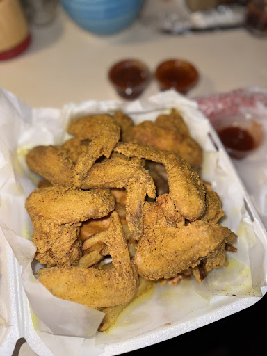 Read morePretty standard fries, sides, burgers, etc. Don't order the wings, they're disgusting wet rubbery soggy things. We wound up not eating them at all and throwing the whole mess in the trash. Other than that, they're okay.