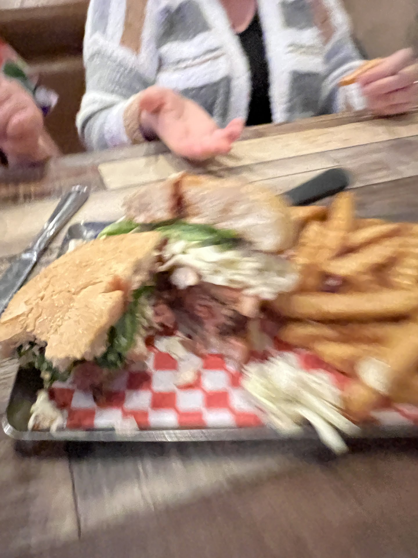 Read moreWe ate dinner here last night. Yes fall break so it was not too busy until we left. We did get to enjoy live music which we sat in the room in the front of the restaurant and it was still extremely loud. We really could not hear each other once he started a song. Our food took over 35 minutes to get to us so I am not sure if they are understaffed or just a slower restaurant. The bar was very packed so maybe that caused the slow down. The theming of this restaurant is outstanding! I would give it a 5 star on that. Hands down the best thing. For our food we started with beer and soda and lemonade, all that came out with large cups and ice. For dinner we got the kids Mac and cheese with fries that my daughter gave a two thumbs up. My wife got a medium rare burger which was very under cooked see photo and of note fries are an additional 4 dollars each!! The burger by itself was 12 dollars very expensive and honestly the portions of the sides were very small for that price. Not a good deal. My son grabbed some wings and fries. Wings were a 3 out of 5 by him. I could tell they were a disappointment when he did not want to bring them home. I had a Cobb salad, French onion soup and cheese grits. Salad and soup were good. The grits is advertised as sharp cheddar grits so please next time melt the cheese in the grits!!! Because the temperature of the grits was not warm enough to melt the it. Very disappointing. Overall I gave the theme a 5 and food a 3. I asked the family if they would come back or try a new restaurant and all said try a new restaurant, therefore if you are in the area give it a try for the theming and...