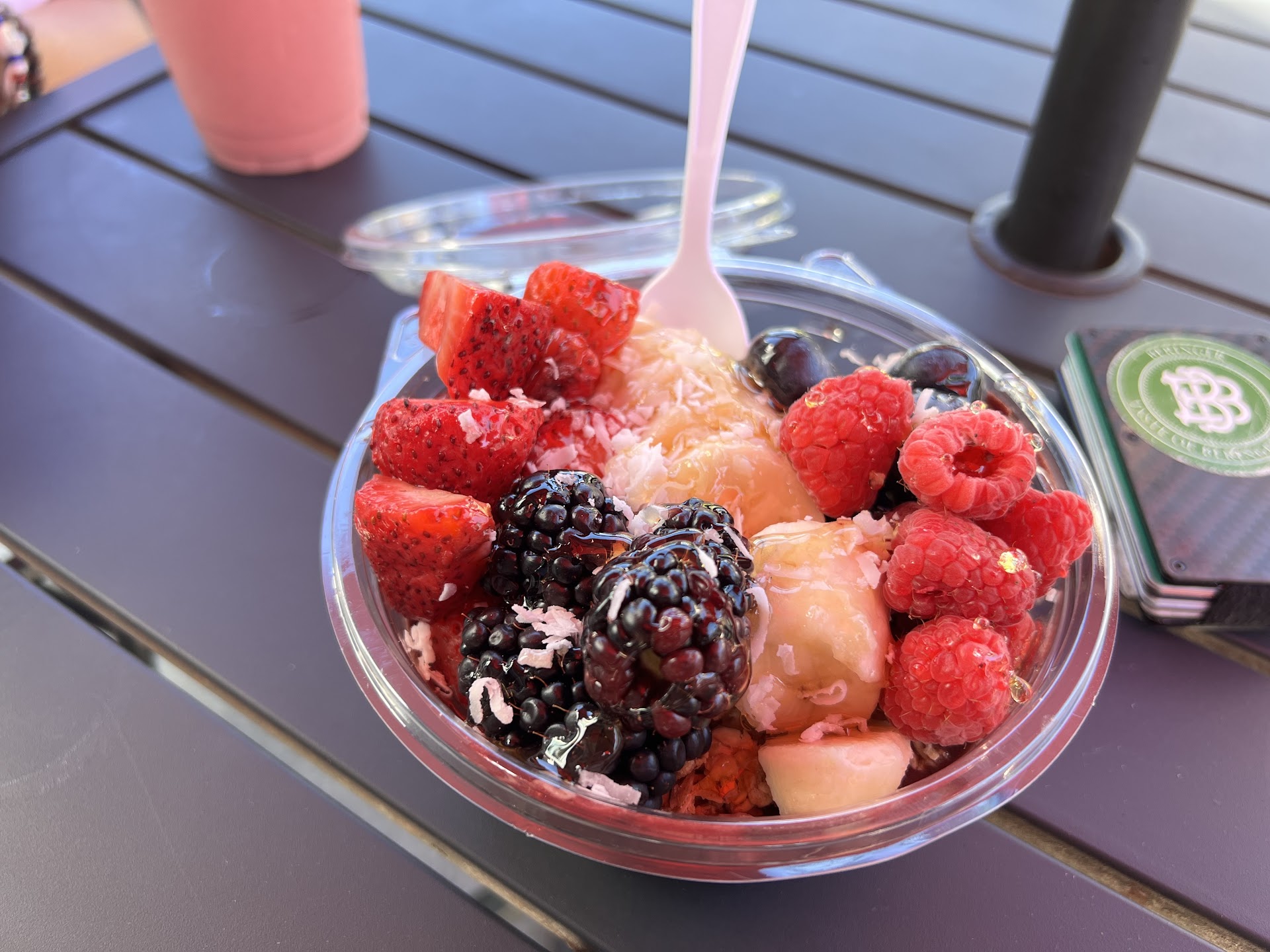 The acai bowl and crepe were delicious, and both came with a lot fruit. The thai tea was also good.