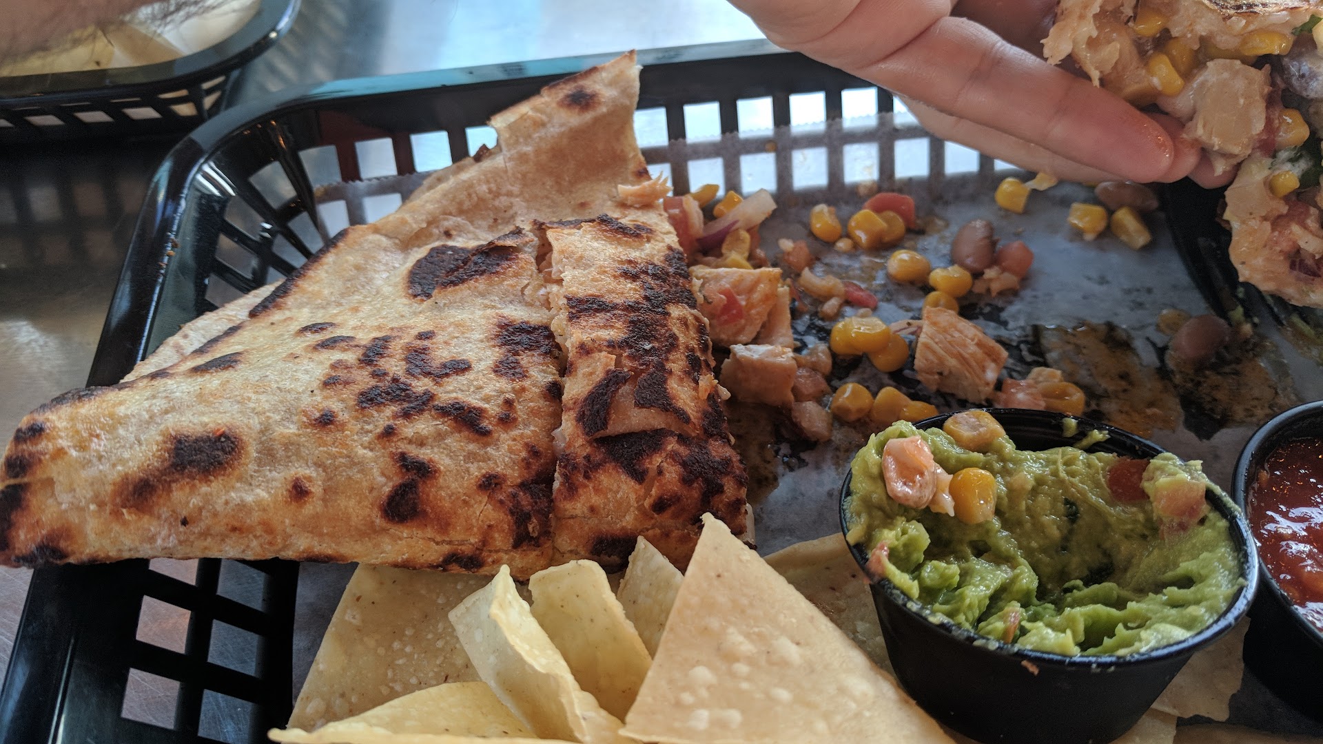 Pictured is the wheat quesadilla with Diego's chicken. Delicious doesn't do it justice. The buttery crisp on the tortilla is to die for. The flavor of the ingredients made me desire none of the common Mexican hit sauces (huge accomplishment). And the sheer size of the thing will not leave you hungry.