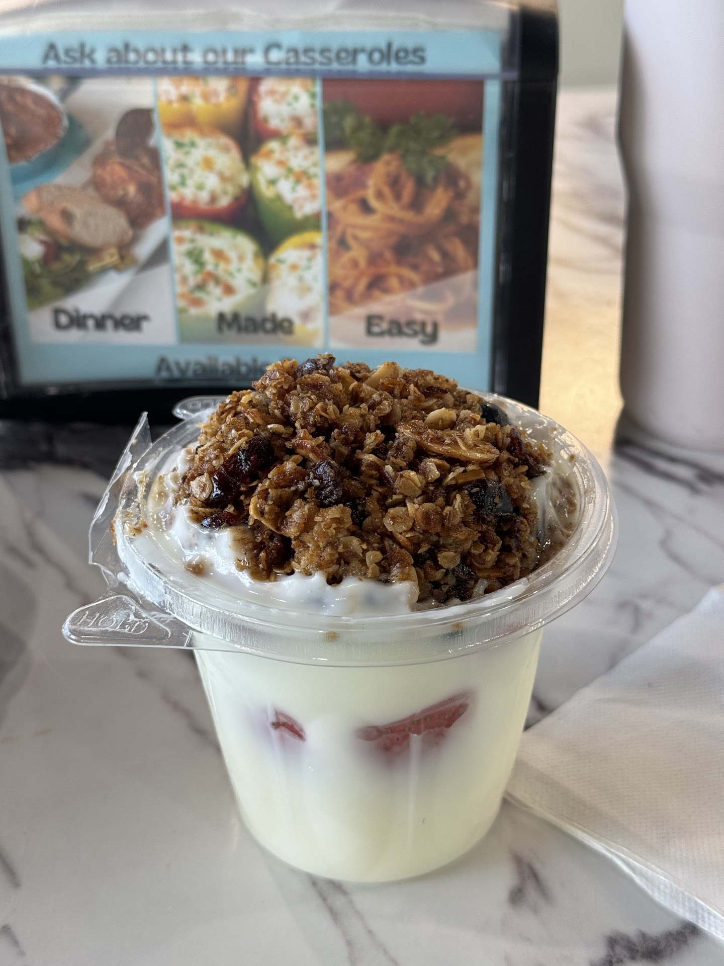 I am pleasantly surprised at the quality of the food and coffees! I ordered the Breakfast Sandwich on artisan nine grain bread. First of all, it is served on huge slices of moist whole grain bread. 2 eggs lightly scrambled and cheese on top. You have options of turkey bacon or turkey sausage. This is $8 and definitely could serve 2 people! I took half back to the condo.