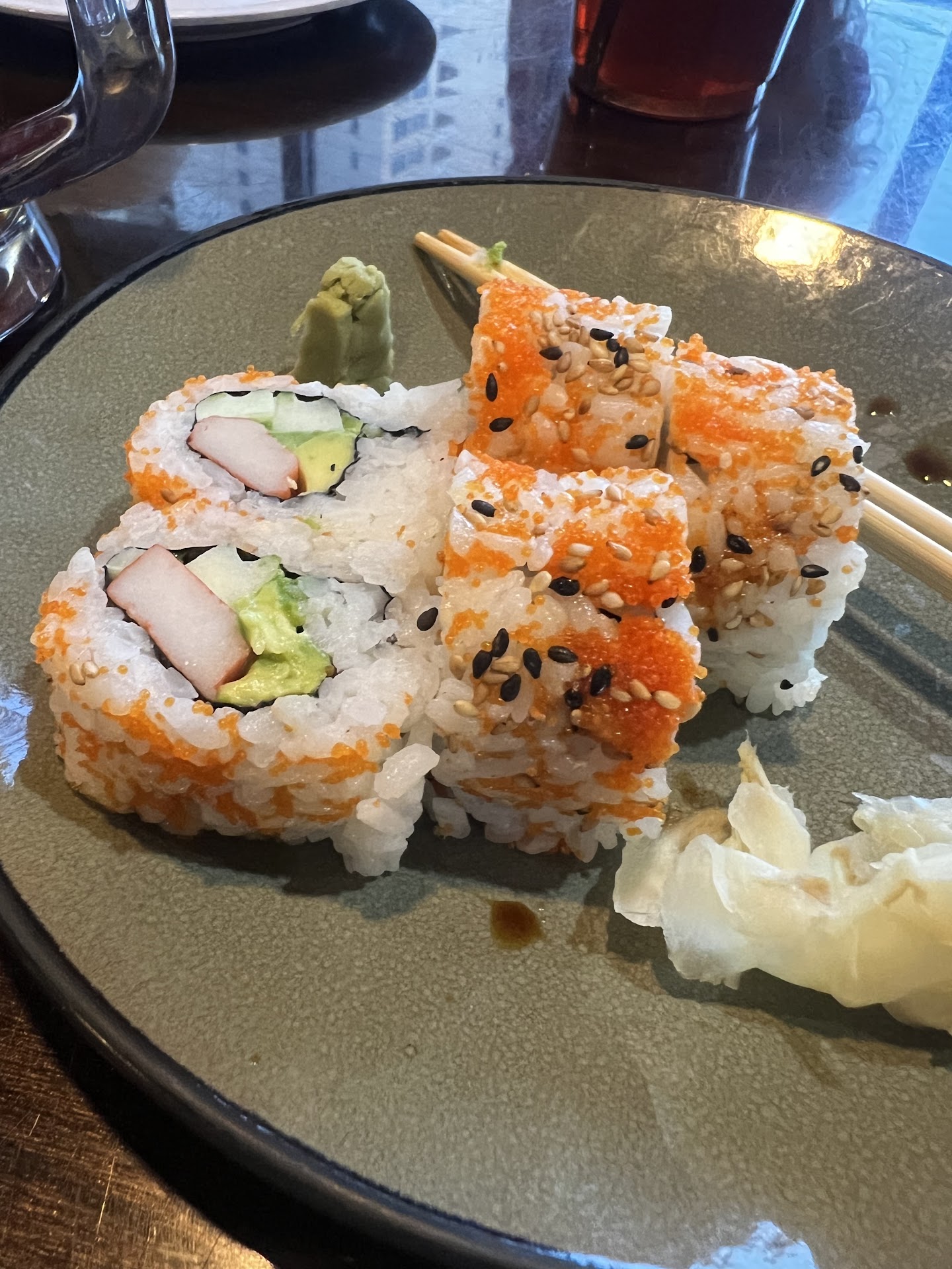 Read moreThe food was delicious! My nit-picky complaint is that the floor was so sticky that even my purse stuck to it, and my teenage boys noticed as they walked--it was really bad. My not-so-nit-picky complaint is that, even though they were not busy, the sushi took forever to be served. But even worse, the only member of our party of 5 that did not order sushi was served significantly sooner than the rest of us. His cashew chicken was possibly the best I have ever had, but he was nearly done with the entire meal before the first of the sushi orders was served (we told him to eat while it was hot). And then the sushi came out in stages, though the delay between stages was nowhere near as long as the delay between the cashew chicken and the sushi. The waiter apologized a couple times, and brought us complimentary spring rolls while we waited, and they were quite tasty also. Overall I would recommend the restaurant, but if you are mixing sushi with non-sushi dishes you may want to remind them to plan the preparation so that all the dishes are...
