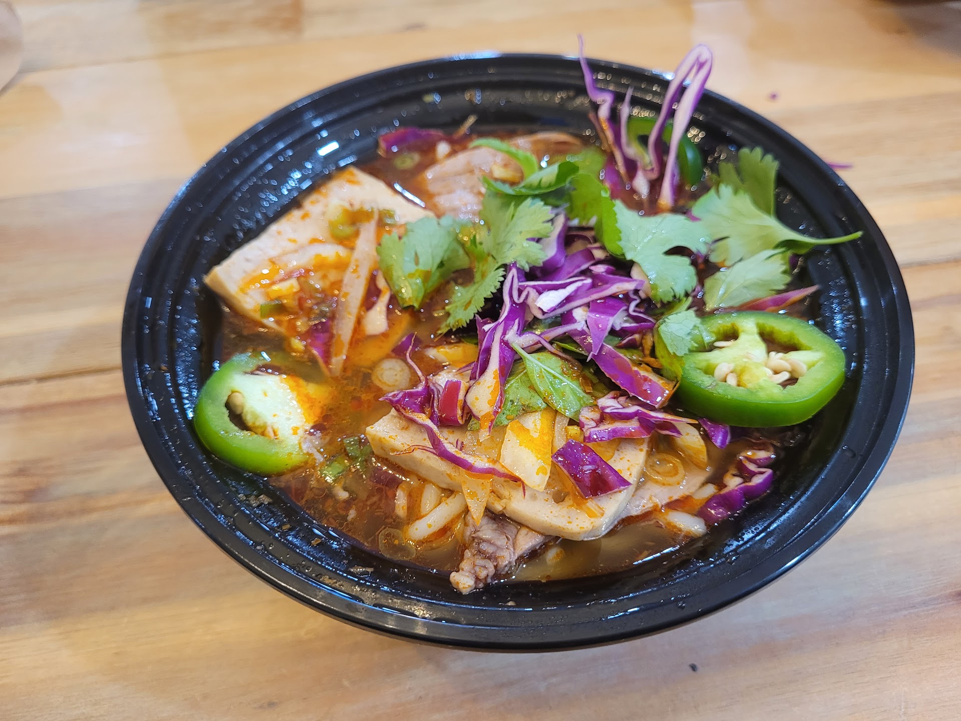 We ordered ramen, 2 pho and a bun bo hue. The portions were smaller than expected but thatās not a big deal. My kid enjoyed the chicken ramen. The unāPhoāgettable only had brisket and meatballs which was disappointing. The briskets were chewy and had big fatty parts to them. The bun bo hue flavor was ok but it comes with only brisket and cha. The side vegetables were self served from a condiment bar but there were only a few sprigs of cilantro, 2 lime wedges, and 3 pieces of jalapeƱo. They were out of bean sprouts and basil. What kind pho place runs out of bean sprouts, cilantro and basil!