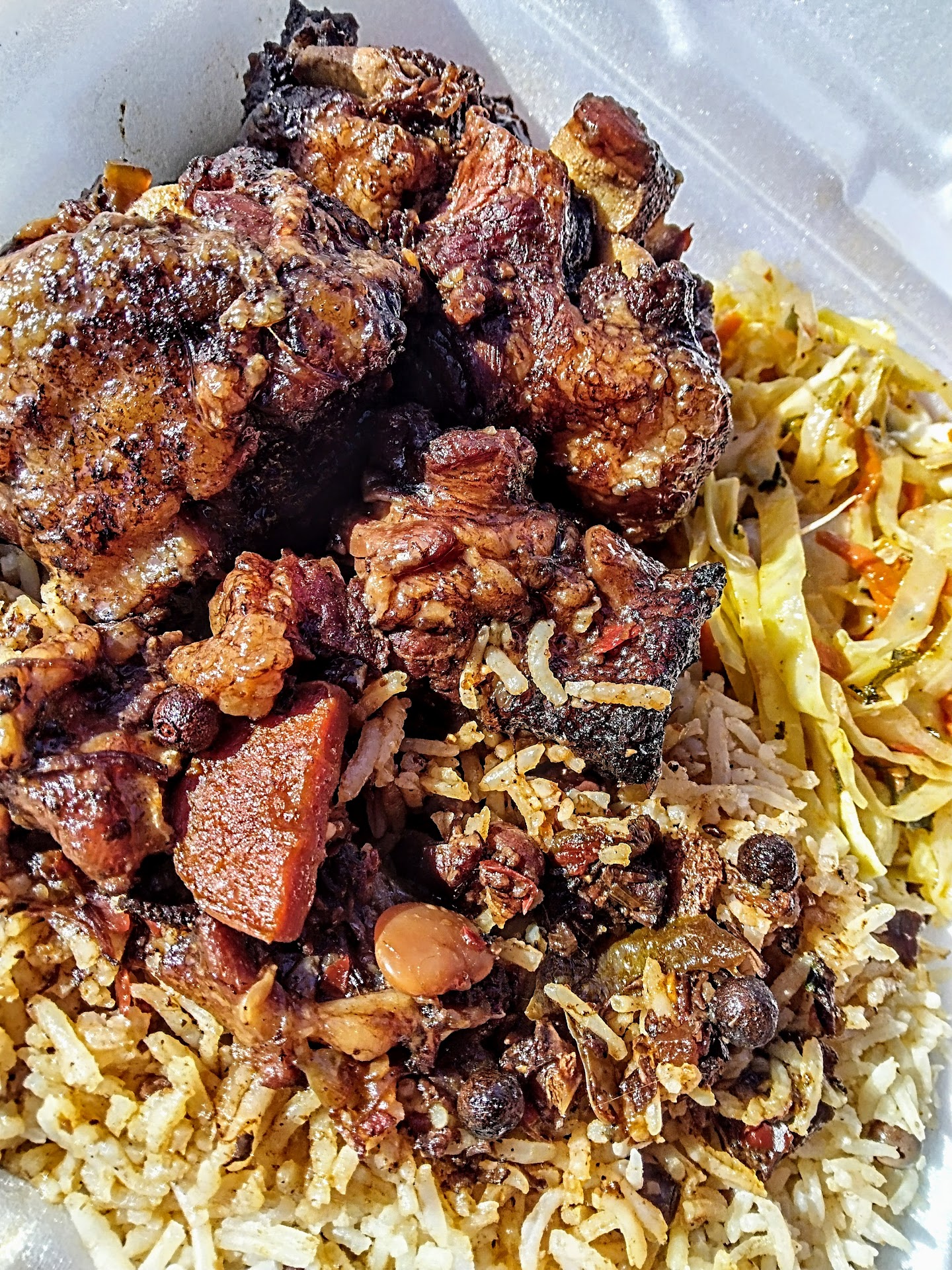 We came in Sunday after church looking for something new and exciting We found it here, authentic Jamaican food My husband had just said before we came in he doesn't like jerk it's too dry and spicy (That too me is how jerk should be be but he is American and I am Thai) Well that man kept eating even after he put his napkin on his plate. He was searching for more chiken! I had the jerk wings they were not spicy at all but they were delicious The wings were crispy, juicy, well marinated.. The peas and rice were a perfect vehicle for the jerk sauce and cabbage I loved what the owner Kevin explained to me was festival bread..it loaned a pleasant much needed crunch to the meal The pasta salad was my husband favorite There is no salt or pepper on the table and none is needed We were the only ones there though it seemed they have a fairly good to go business going It seemed on the weekends it also serves as a nightclub? All in all we will be back to try more of this happy food Fresh authentic delivered...
