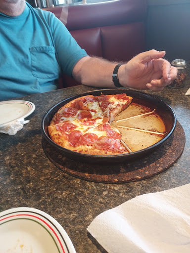 If you are the type of person who likes to engage with wait staff that mumbles, and points you in the general direction of a table this might be the pizza place for you. I mean really if straws aren't important to be able to sip your ice filled cup with a spot of liquid (that randomly changes throughout the night according to how the wait staff feels (and you get to take off the waitress' tray)), you might want to consider this place among your options. Not only will the cups change sizes, and beverages change, but your order will come out exactly NOT how you want it. I mean really, ask for beef added to something...is fabulous; who knew beef was invisible? If you have children please for the love of God and all that is great and wonderful do NOT let them get the pickles from the salad bar (no matter how long it is taking them to process your order I mean over an hour seems reasonable for a couple of pizzas right); they appear to be kosher, but they are none of the sort. Having placed in my mouth what appeared to be a pickle, you can imagine the surprise to my taste buds when the taste of jalapeno filled my mouth, and my throat began to shut. IT WAS WONDERFUL! So, yeah back to the pizzas. Two came out okay looking, and one had the invisible beef. Be it beyond me to be one of those people who likes to see what she eats, I asked the waitress to send it back to get the beef of the visible type. Within 30 minutes she came back out (by then the kids were done eating) with the exact same pizza covered in what we assumed was beef, and ate. Who knew twice cooked pizza would be so dry, tasteless, and well for a lack of better words come back and bite the next morning. Turns out that it wasn't beef after all, or so that's what my digestive system is telling me, so for anyone who wants a senseless wait, tasteless pizza, inattentive waitstaff, reused salad bar items this is the place for you. Your insides will love you in the end...Oh, not to mention how wonderful the management is. As we were paying they asked "How was everything?" Mind you he was talking to someone I assume was a friend for about five minutes, causing us to wait to pay (I know everyone wants to spend over 2 hours in a pizza place). To which I promptly replied "The food was okay, I guess, but the service sucked." He then went on to tell me about a broken window in the drive through, and not listen to what I was saying, so really this is the place for you to go if you want your complaints handled promptly and to be listened to...