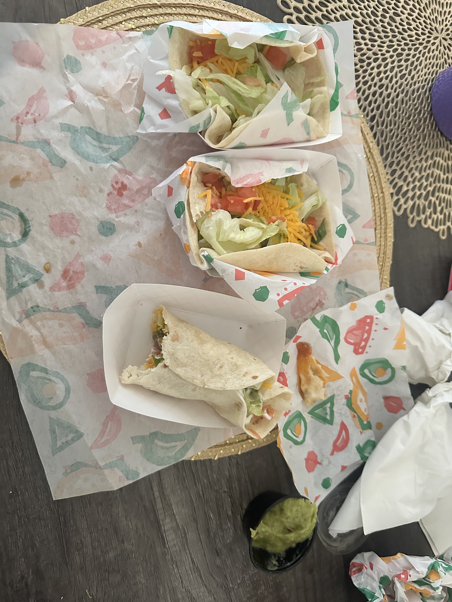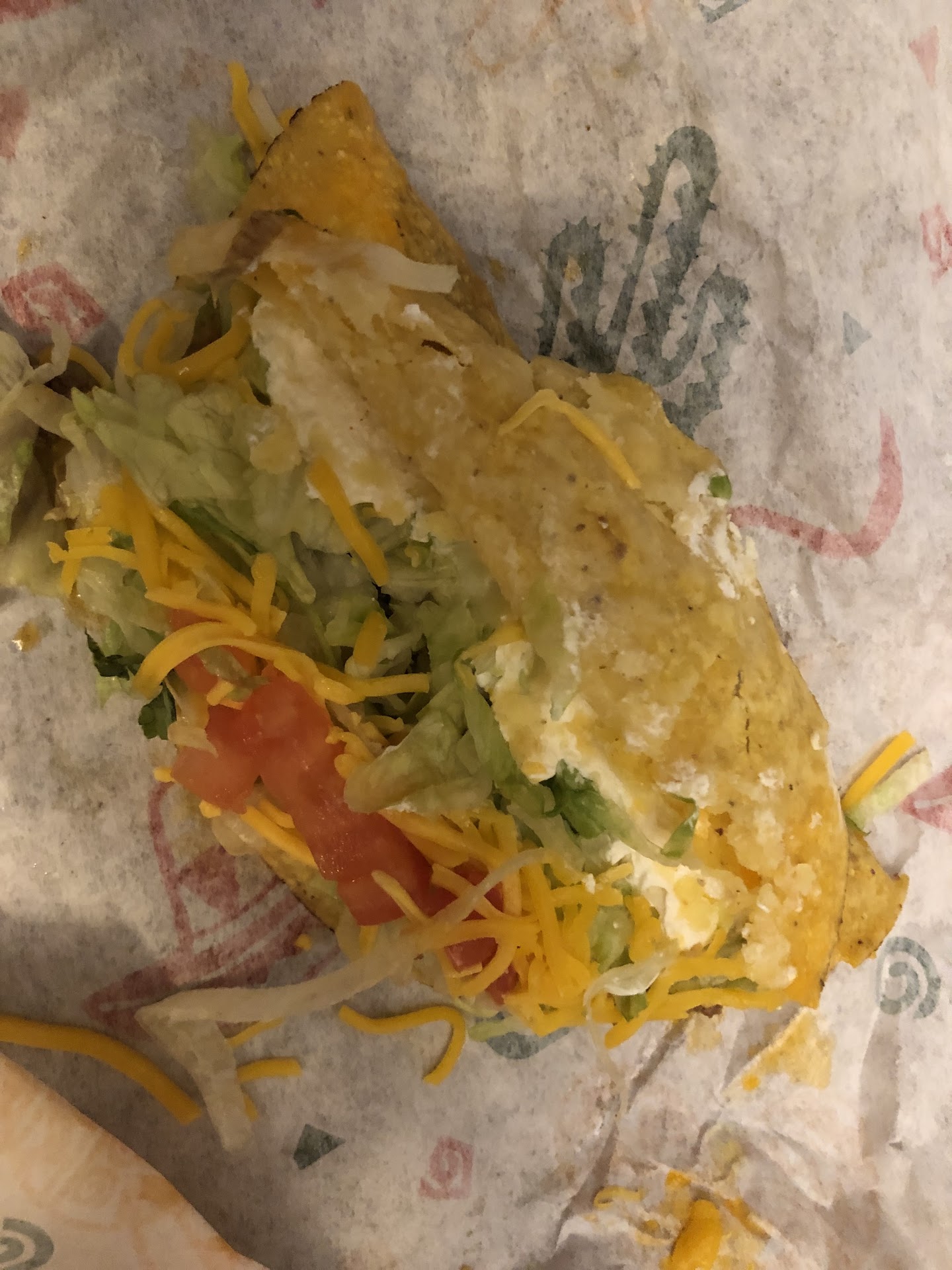 Read moreA truly disappointing âMexican Foodâ experience. Ordered 3 Burrito Grande, 2 hard (crunchy) and 2 soft tacos. All of the burritos were filled with more than 90% refried beans and almost No Meat. There was no Grande, just beans. If I wanted bean burritos, I would have ordered some. The âHot Sauceâ was tomato juice mixed with paste. No flavor, no heat. The hard tacos were not crunchy at all; the shells were limp and soggy from the bottom to the top! After chewing on the first limp hard taco, I couldnât bring myself or any of my family to eat the other(pictured) and threw it away. Not making this up. The soft tacos were ok, but nothing special. Previous positive reviews tricked me into a big mistake. On a positive note, the Staff was quite friendly. I wonât be back. Really...