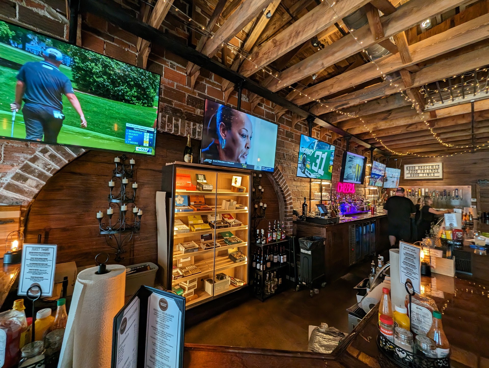 Love the atmosphere. Such a cool place. Generous bar area with a selection of cigars even. A dining room and what seems to be a great outdoor area.