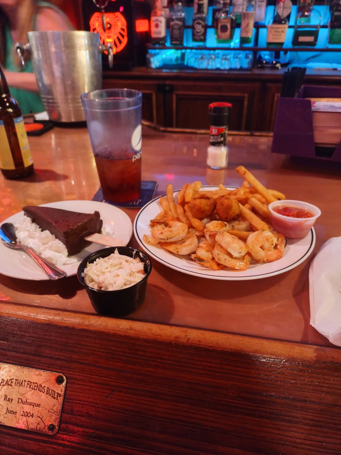 Read moreWas really excited to try this place out based on the positive reviews but ended up disappointed. Both my guest and I took 2 bites of our food and then just talked for a bit before leaving to catch a movie and get something else to eat elsewhere. We decided to split the cheese bites appetizer, not much flavor and the ranch brought out to dip it in was a Ken's to go thing instead of a regular bowl or ramikin of ranch. Ate 2 and then gave it up. All for unhealthy but it's got to taste good to be worth it! They came out piping hot but weren't good. Regretted ordering them. Basically watered down kraft Mac that got fried. My friend got the greek gyro. The meat on it looked like plastic pho meat. He took one bite and then just nibbled on his fries. I got the Philly cheesesteak and paid the upcharge for sweet potato fries. The Philly meat had no seasoning or any flavor. Was just weirdly moist. I think I had 1-2 little diced peppers total when I looked at it. Equivalent of tipping a penny. Can yall not afford to put actual veggies on the thing like menu promises? Bread was pale and soggy, clearly hadn't been toasted. I took a few small bites then gave it up as a lost cause. Sweet potato fries were sold to me as "tossed in brown sugar and butter" which sounded unhealthily intriguing and nigh-dessertish. They came out as dry, over-cooked thin sweet potato fries with a random scattering of brown sugar on top. I think i maybe had 3 nefore i gave up on them as well. The whole meal was a huge letdown. Waitress was nice but not very attentive, didn't really ask how the food was. Offered to take gyro off receipt but never said anything to me about mine or apologized or asked if we wanted to swap for something else. We sat there about 45 minutes and she gave no indication that it was odd we weren't eating. Seat booths were disgustingly covered in crumbs. Maybe you have to be drunk to enjoy it or we just got the worst things on the menu. I don't know but I will not return and will actively warn people away. PC is limited, especially in terms of good food within a reasonable distance of the base, but this place is definitely not it. Do...