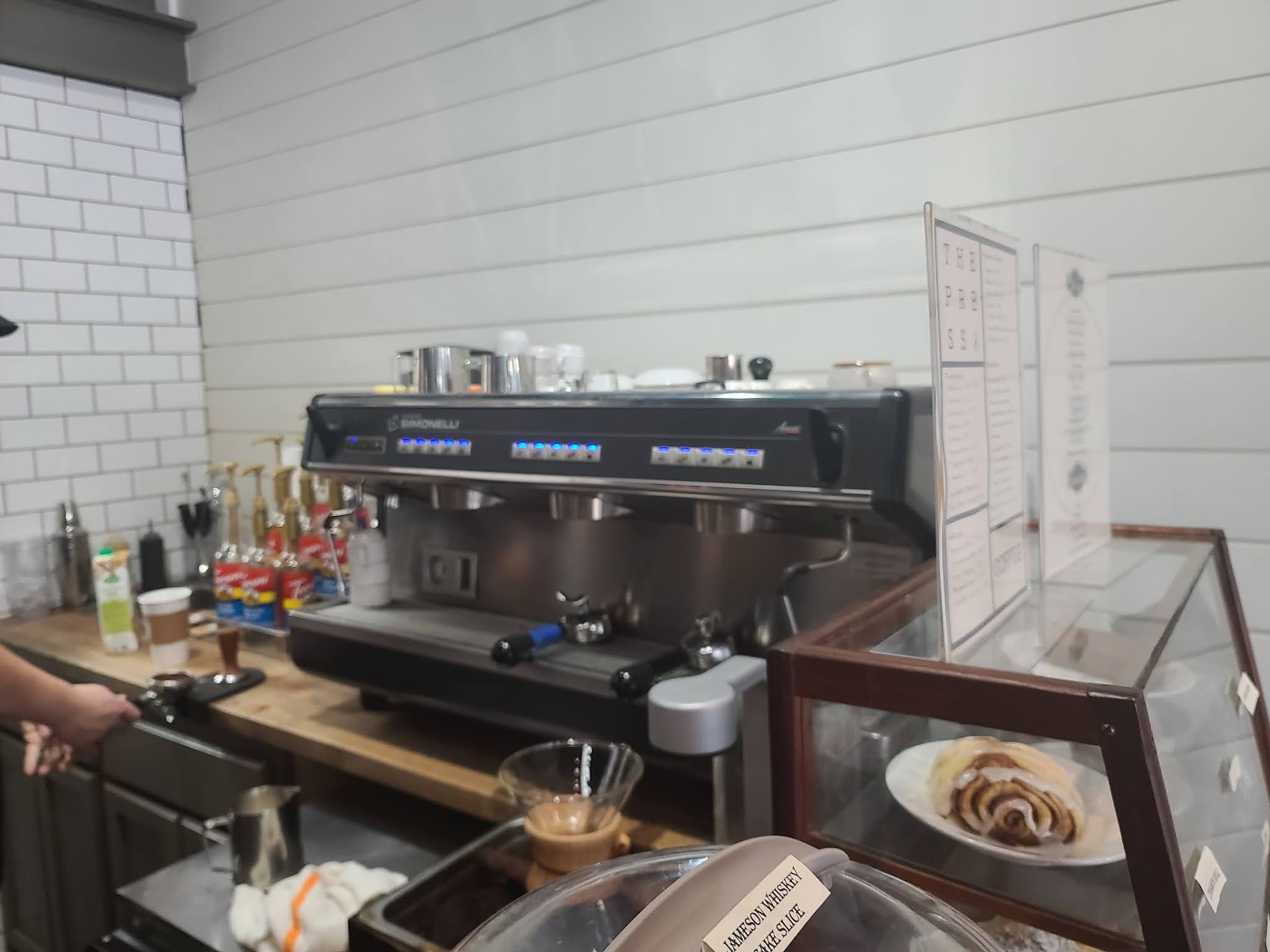 The Press is a classy and cozy café in historic downtown Panama City. While maintaining a spacious atmosphere, you still get an intimate and comfortable environment indicative of the café experience. My first visit, I tried the seasonal Maple Cinnamon Latte. The maple was just a sweet note at the end with the cinnamon being the real star of the drink. I love The Pour's Teddy Roosevelt Latte which is another cinnamon style latte and The Press' Maple Cinnamon Latte is a good comparison. I came back the next day to try the Mocha Macadamia Nut Undertow, a delicious caffeinated experience everyone should try! Undertows feature bitter and warm espresso on top, followed by creamy half and half, finished with the sweet syrup at the bottom. A great shot-style beverage to wake you up and get your day going, definitely not meant to be sat with and sipped at. I am excited to find a reason to come back and sit inside to work in the near future. The space really is inviting. I would like to try their bakery goods. On my second visit, my partner and I got an Apple and Brie crepe and a Breakfast crepe featuring bacon, eggs, cheese, sausage, and potatoes. My crepe had the rind still on the brie and the skin still on the caramelized apples. The crepe itself was rather tough so cutting through and eating the crepe was not exactly an amazing experience. My partner said that his breakfast crepe was just ok, so really not a place to go if you're looking for great crepes; there are other places in Bay County that make crepes a true experience. Finally, I cannot appreciate enough how inviting the atmosphere of this café is. The color scheme, the nick knacks, the set up, and the bar area are all really lovely. The design aesthetic at The Press was really well thought out and a nice contrast to some of the more chaotically decorated stores in downtown Panama City. I will be visiting again soon, I'm certain. The Press is doing a lot of things right and the areas for improvement are easily overlooked for decently priced, delicious...