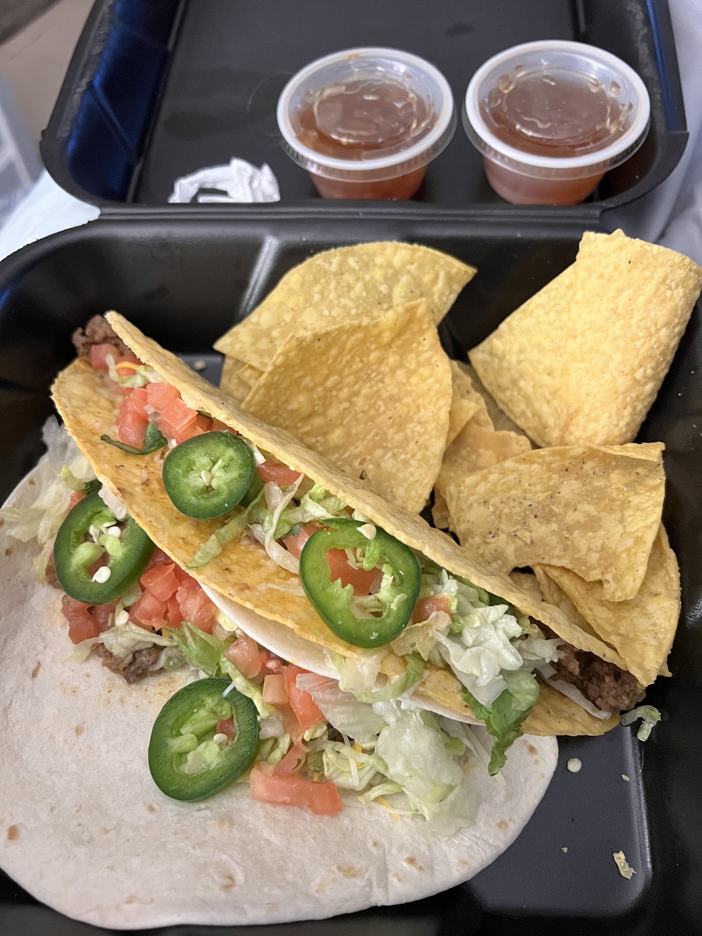 Read moreFirstly, the food was fresh and good. But…I ordered ahead of time on the app and scheduled pickup time for 4:45. I arrived right on time and tapped the “I’m here” button. There was no designated curbside parking so I parked straight across from the doors. 15 minutes later I got out of the car and went inside to see what was taking so long. The young lady at the counter was very kind. She went into the kitchen to find out what was going on with my order. After another 5 minutes my order came out. I was frustrated and upset but I smiled and said thank you. I only live 5 minutes away but the food wasn’t hot when I got it home. It was warm at best and the chips in the styrofoam containers were stale and chewy. The chips in the bags were better. Tacos and chimichanga were very good. Atom bombs were yummy and so was the sweet chili sauce. Queso, guac, and salsa were all good as well. We might be back for the food but the curbside experience was a big...