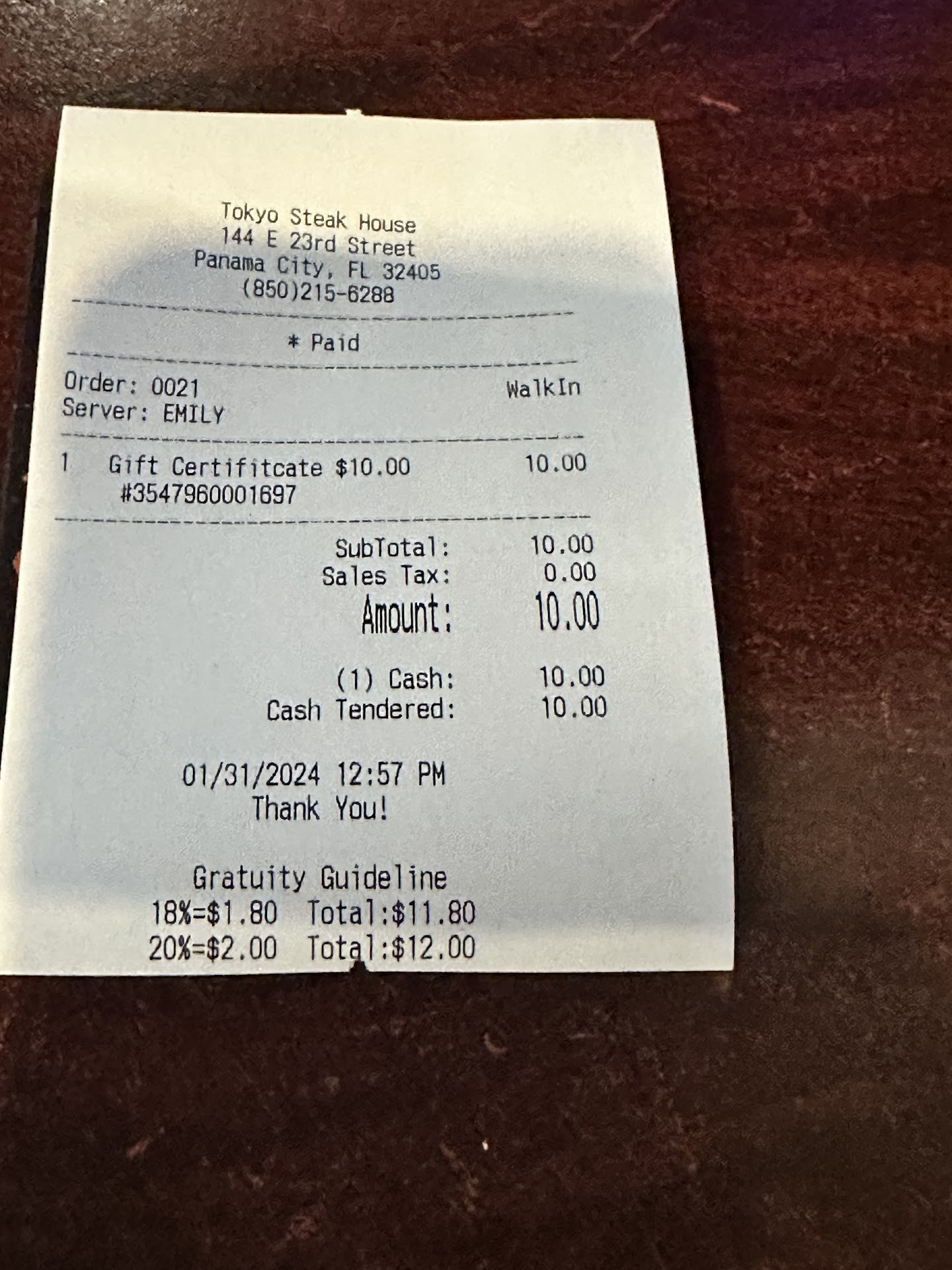Read moreCame in for dinner at 7:15, had called ahead for a party of 7 saying that we were coming and were told they couldnât promise a table would be ready when we got there so were prepared to wait a little bit, as any large party does at a hibachi restaurant. We arrive just before 7:15 and are told that there are multiple parties ahead of us which is fine. 7:30 rolls around and they call our party up. We go up to the host stand to be seated and are told that we are just NEXT in line and that a table isnât actually ready yet, a little frustrating, but no big problem. 10 minutes later, 3 large parties are sat, thatâs funny I thought we were next in line. Was starting to get very mad at this point because the hostess(who turns out to barely be competent at her job) said our party was next. We wait for 1 whole hour before we are called up to be sat, at this time two of our party members had to leave, a nice dinner of friends on a spring break trip, and all the dumb hostess can tell us is âCurrently all the tables are occupied but we promise you are nextâ. We are pretty heated at this point waiting for over an hour after being told we are seated next and 2 of our party members leaving. We sit down and our server is very welcoming. After taking our orders the hibachi chef takes 45 minutes⌠to come out after the server had left us. Hibachi chef was okay, made many mistakes with who ordered what and our medium rare steak was cooked medium to medium-well. The vegetables were undercooked and the shrimp appetizer not close to par compared to other hibachi steakhouses. We ended up spending over 3 hours, over an hour of which was waiting after being told âyou are the next partyâ. Overall would not recommend, staff is very poorly organized and are unable to tell customers direct answers, sub par hibachi chef, and sub par food, not to mention the white sauce was just not good at all. The only compliment I can give is that the server was exceptional considering we barely enjoyed our time because the front of house staff was so airheaded. 2/10 will not be...