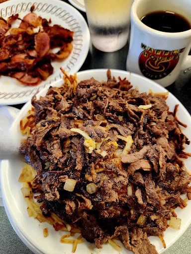 One of the most terrible experiences I've had at a waffle House.... I got the cheese steak and eggs. I said two different times can you please add cheese to the cheese steak. She told me oh yeah that's part of the cheese steak and eggs.