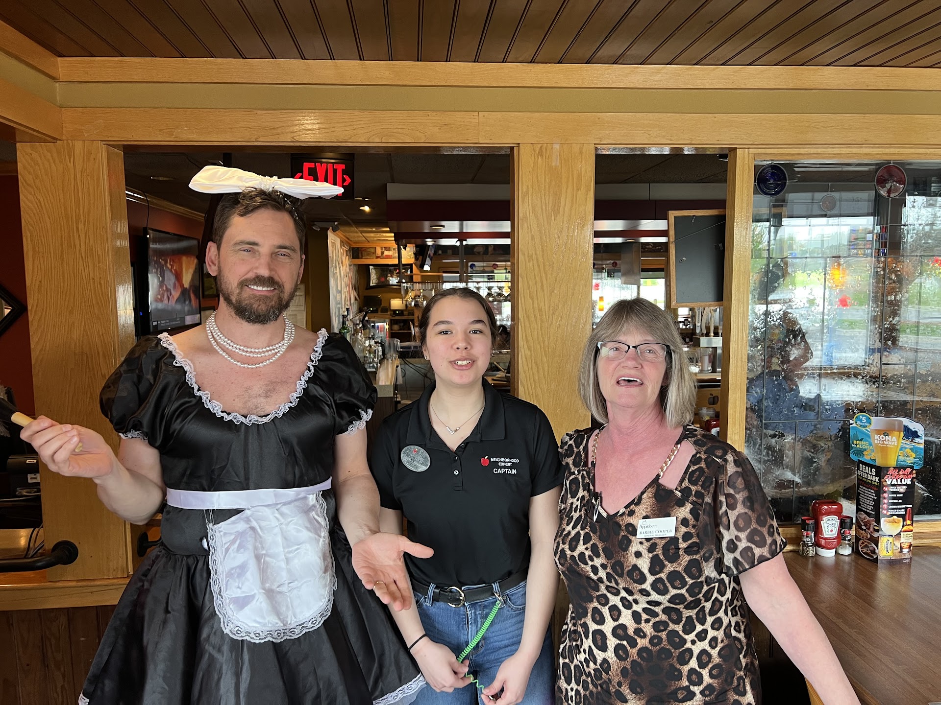 Never have I ever imagined that a lunch at Applebee's in Ralston could turn into a front-row seat at a French farce until Mitch, who lost a bet, sashayed in. Draped in a frilly French maid outfit, complete with lacy apron and a dainty headpiece, Mitch was the picture of sheer mortification. The outfit, a frothy concoction of frills and flounces, was hilariously humiliating with its exaggerated femininity contrasted starkly against Mitch's unassuming demeanor.