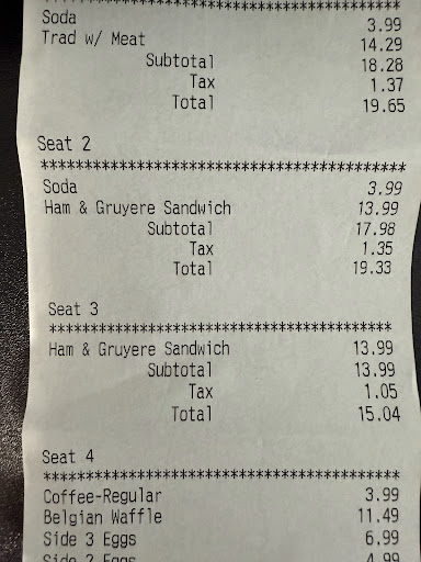To make matters worse, our waitress dropped off the bill and disappeared. She didn’t check if we needed refills, didn’t ask if the food was okay, and didn’t offer boxes for leftovers. When we reviewed the bill, we noticed we were charged twice for the Ham & Gruyere sandwiches instead of omelets (which were slightly more expensive). At that point, I was too frustrated to bother fixing a $1 difference, but the lack of service was unacceptable.