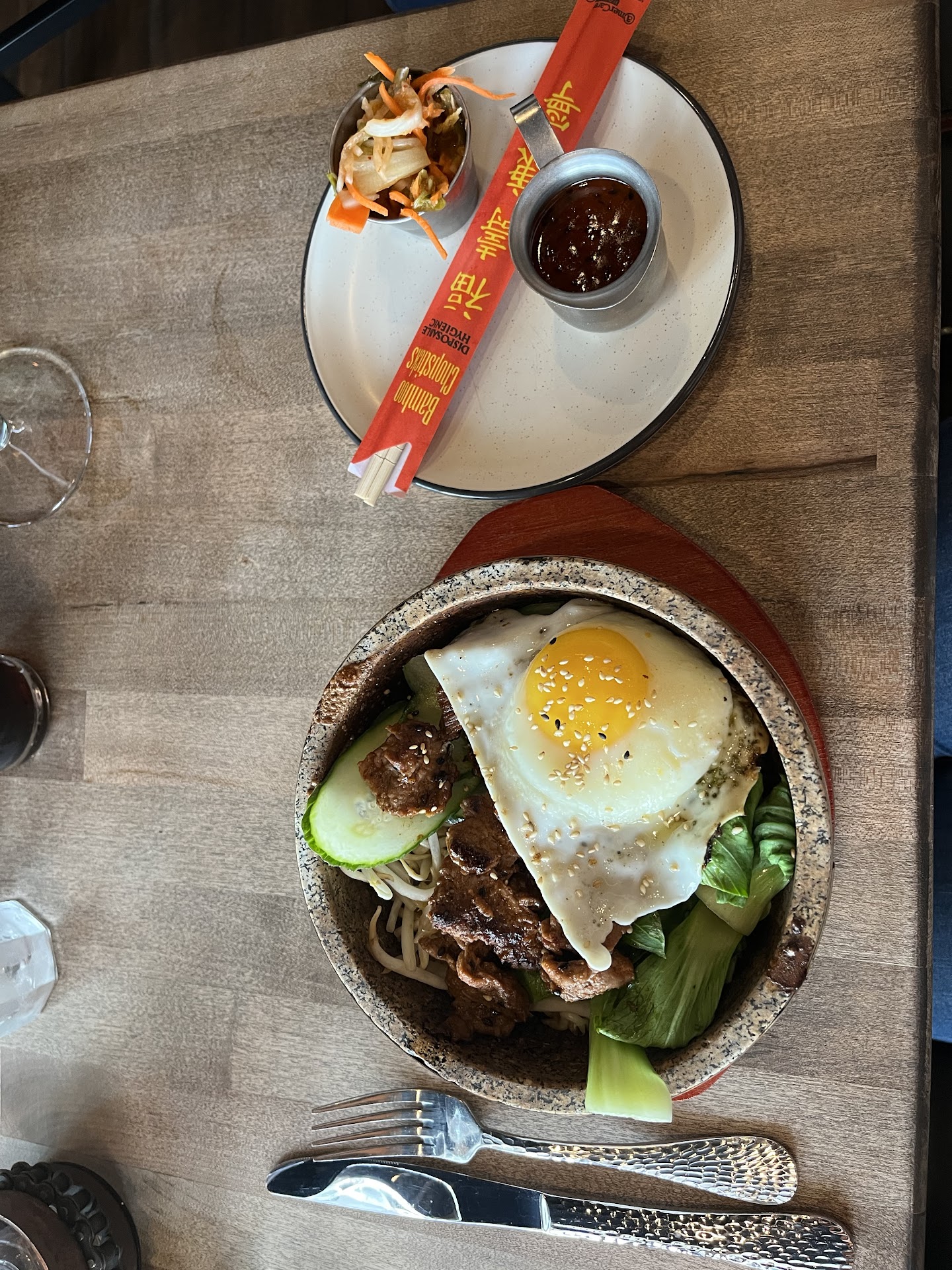 Read moreWent here for date night with the wife and so glad we did. I remember when the place was a sushi restaurant, and upon walking in, the transformation of the space was pretty amazing. To me it has a trendy but rustic look. It was pretty busy when we went, which was a Saturday night, but luckily we made reservations. I think that's probably the way to go since this seems like a popular spot. The staff was welcoming, and our server was attentive and informative, given this was our first time visiting. I ended up ordering the fried chicken, the wife got the bibimbap. We also ordered the Brussels sprouts/cauliflower in Thai chili sauce appetizer which was super yum! The wife really liked her dish. Tasting it myself, I thought it was very good as well. My fried chicken was good, but it was borderline overdone. The crust was a dark brown vs golden brown, and retained a bit more grease than I would have liked. And, the meat was right on the line of being overcooked. BUT... luckily it wasn't, though it was close. Overall, my dish was tasty and the accompanying risotto and carrot puree were delicious. I would definitely recommend stopping in if you...