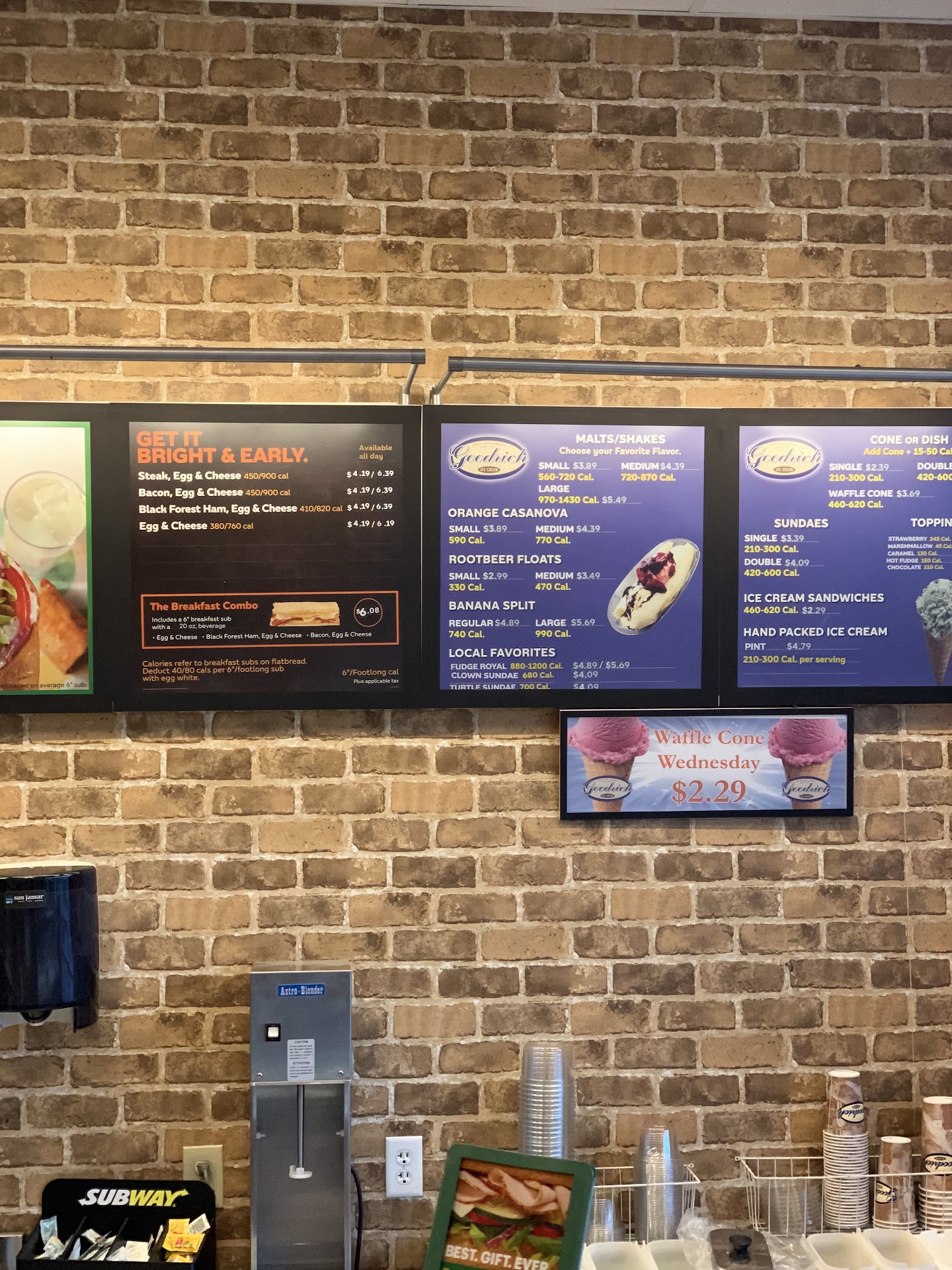 Read moreSubway owner decides he won’t take subway coupons after your sandwiches are completed. Instead of buy one get one with large pop and cost $13.50. I paid $25.30 cause nothing posted about not taking subway coupons. The gal was real nice and said franchise owner doesn’t take coupons.