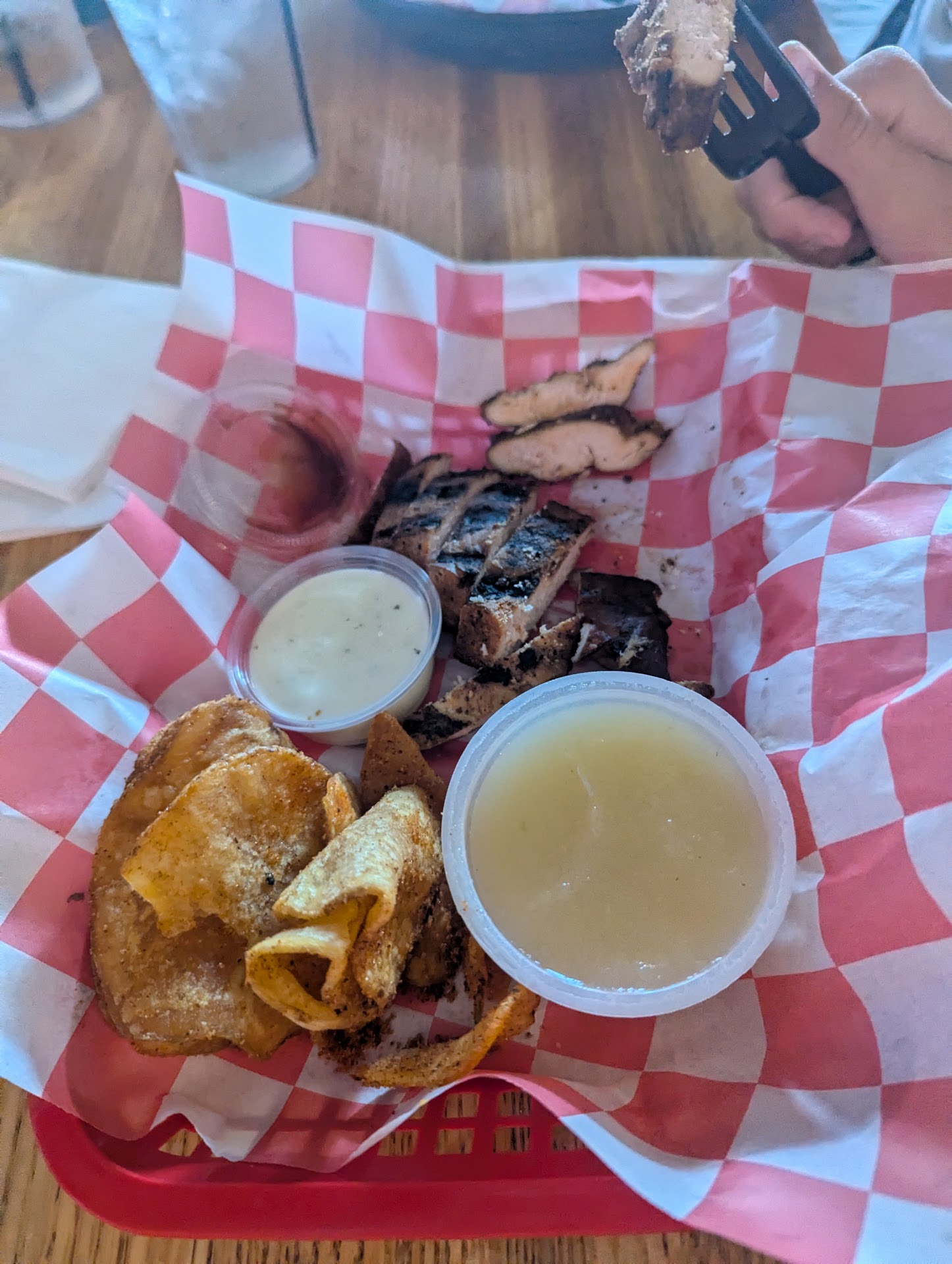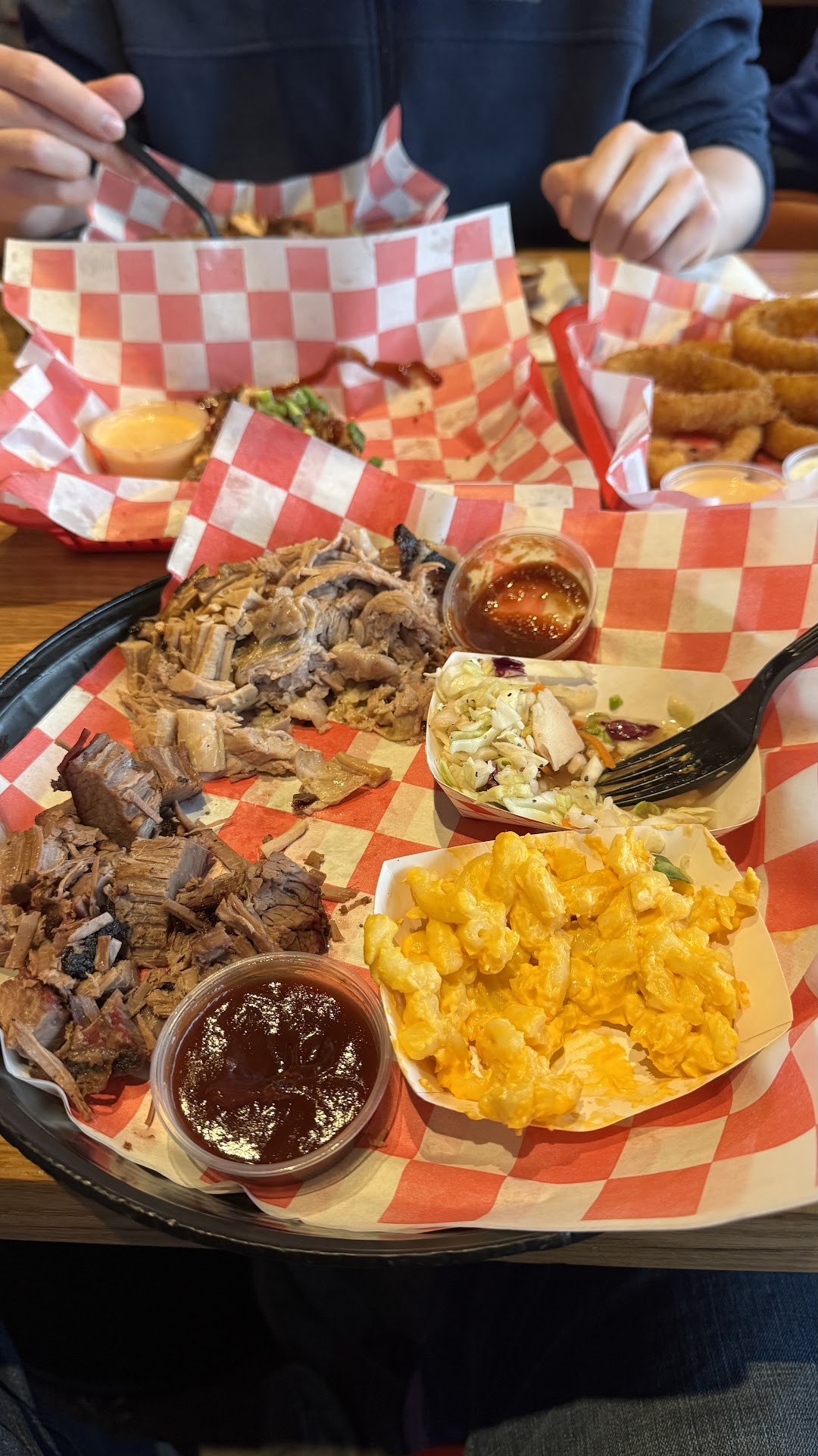 Flavor-wise, the meat was great. Not overly smoky, but definitely smoky. Unfortunately, flavor is not the only consideration in a barbecue and the meat was quite dry. The brisket and chicken were both dry, although the chicken was still tender so perhaps this was just bad luck on our end. The pulled pork was decent enough.
